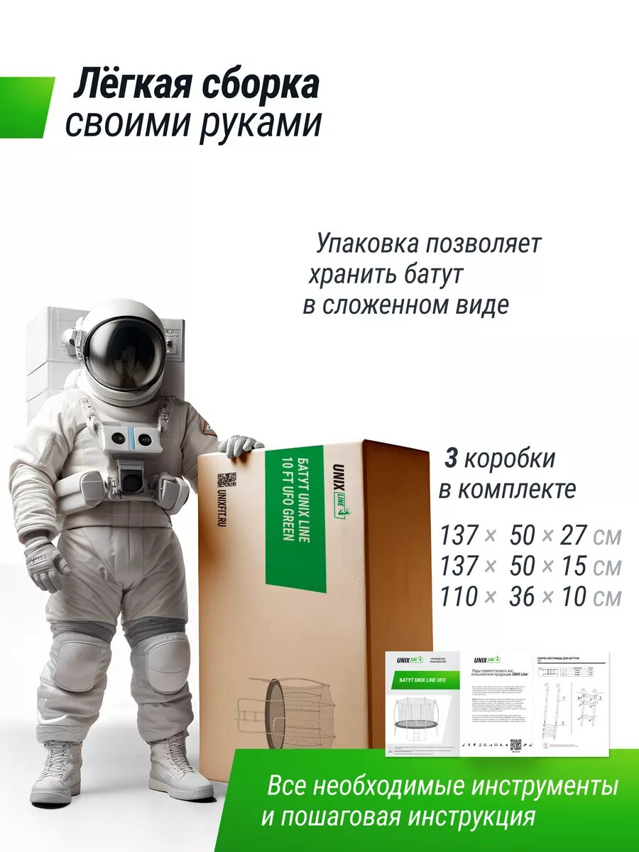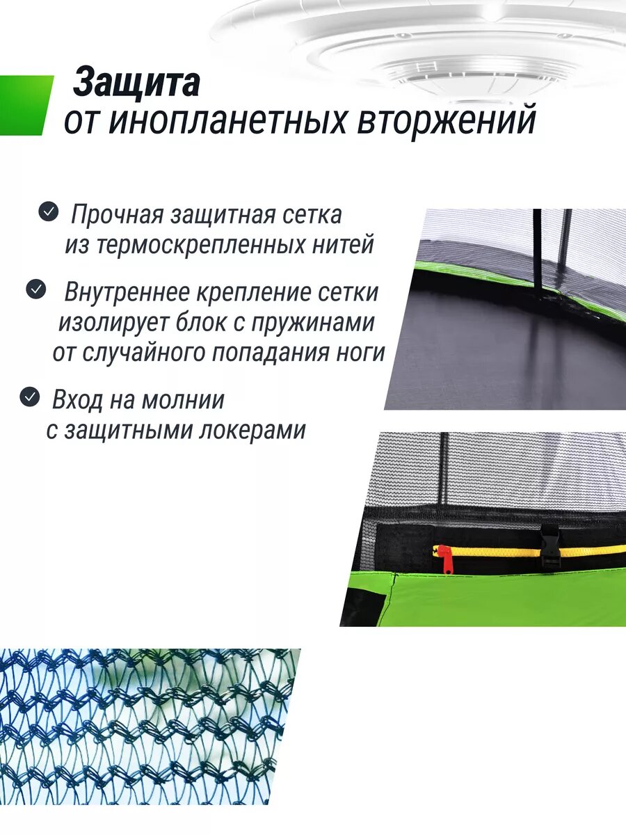 СохранитьБатут каркасный UNIX Line UFO 16 ft Green, диаметр 488 см, до 150 кг, с внутренней защитной сеткой, для дома и улицы интересное: