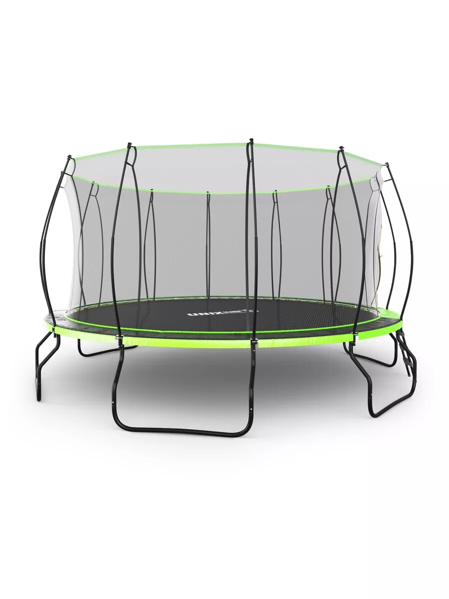 Батут каркасный UNIX Line UFO 14 ft Green, диаметр 427 см, до 150 кг, с внутренней защитной сеткой, для дома и улицы