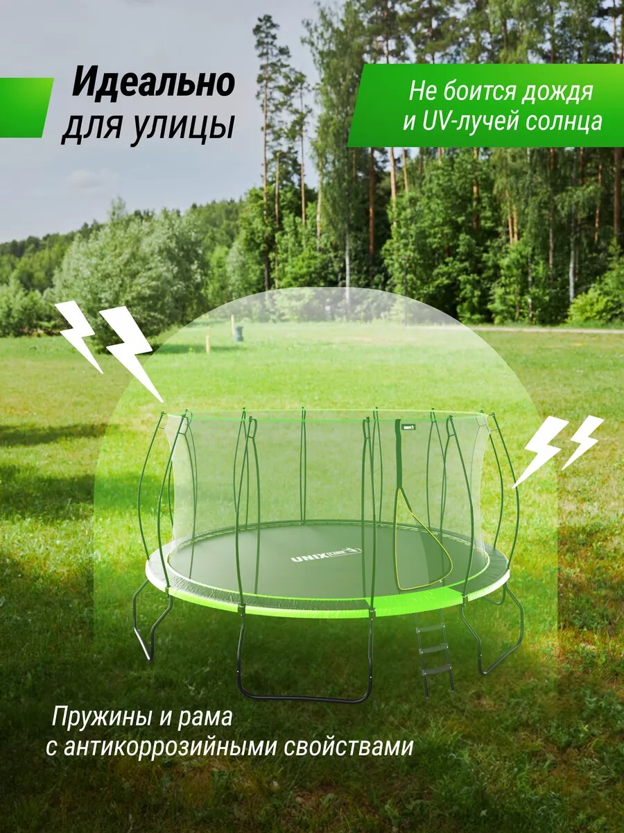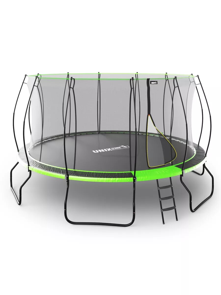 Купить Батут каркасный UNIX Line UFO 16 ft Green, диаметр 488 см, до 150 кг, с внутренней защитной сеткой, для дома и улицы