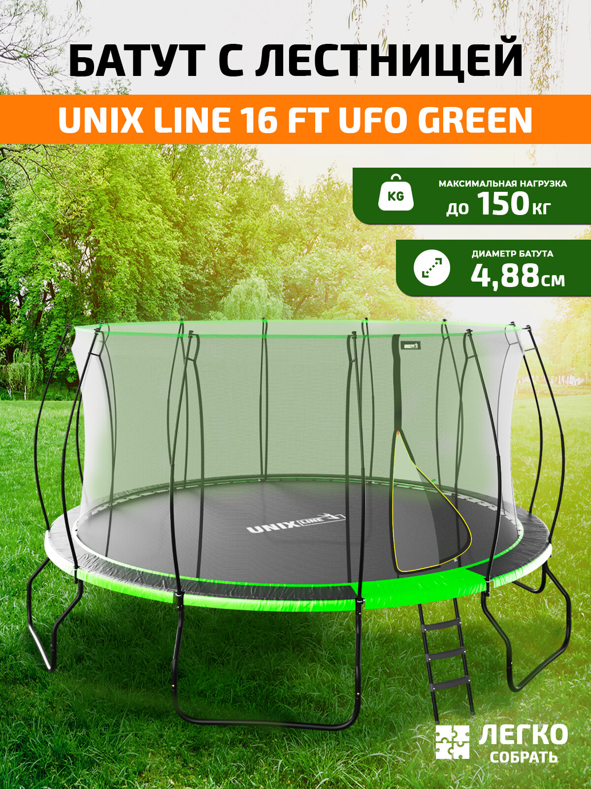 СохранитьБатут UNIX Line 16 ft UFO зеленый, 488 см + лестница интересное: