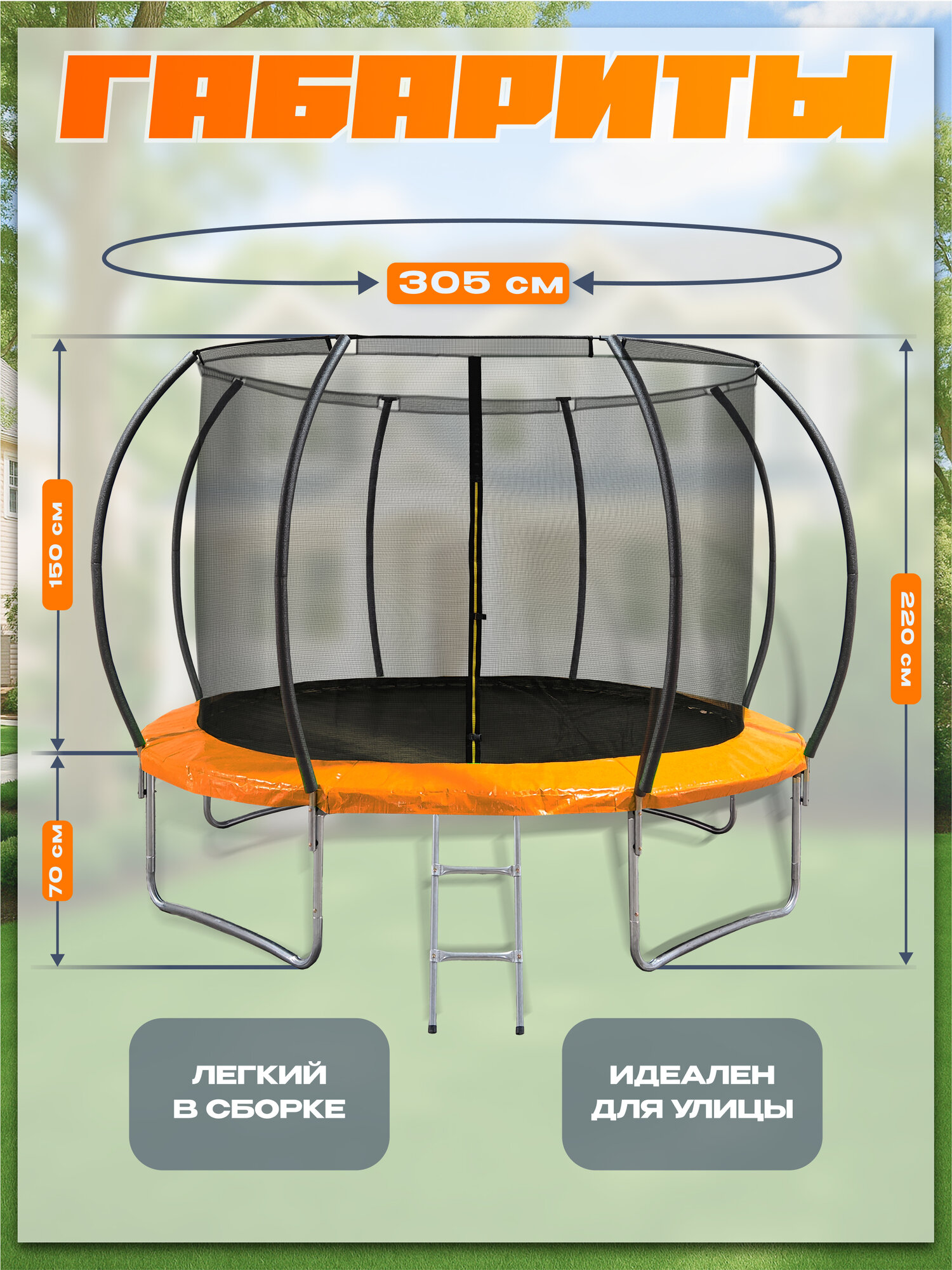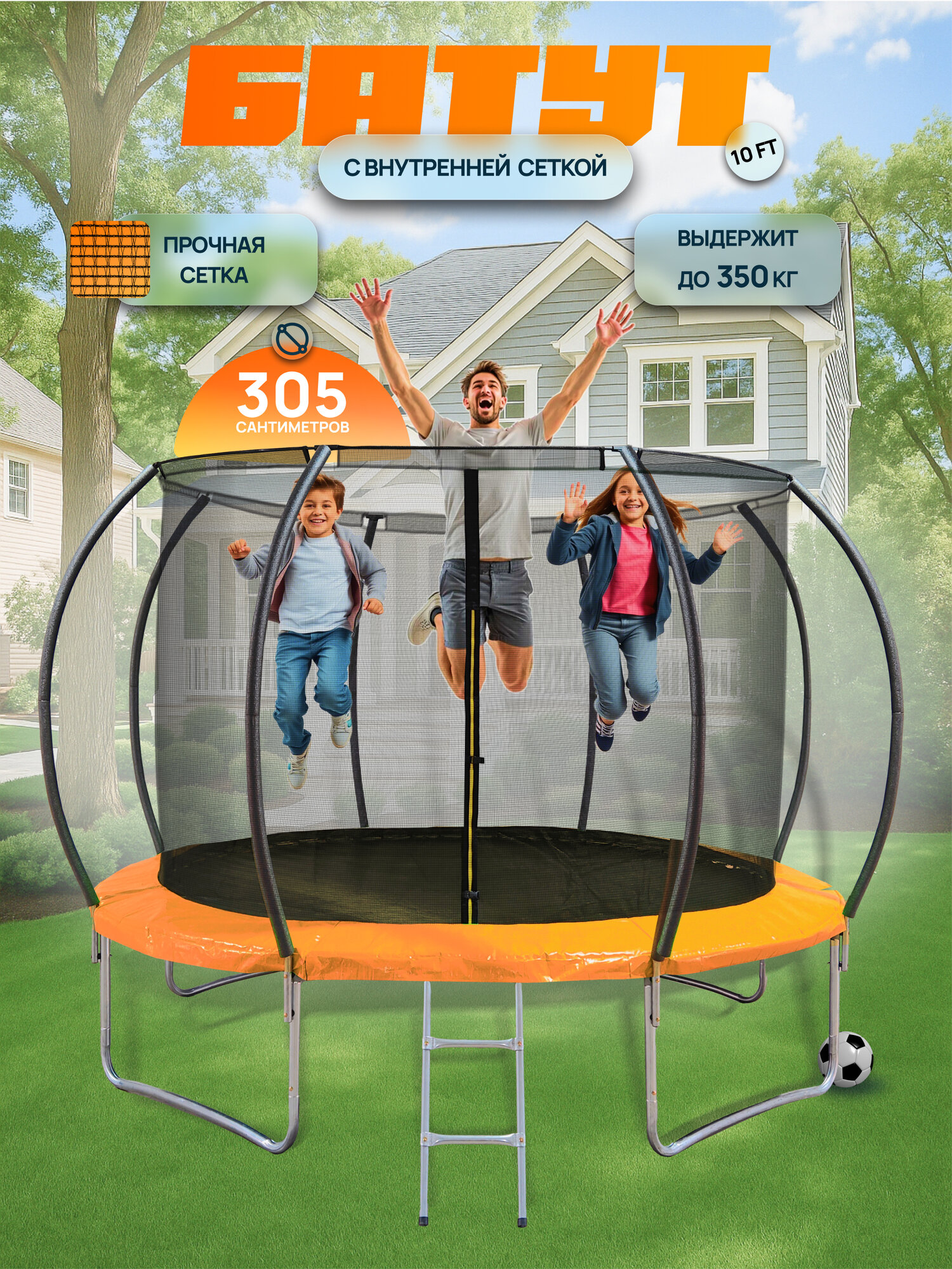 Батут BIG 10FT, уличный, детский, с защитной сеткой, каркасный, диаметр 305 см, до 350кг интересное: