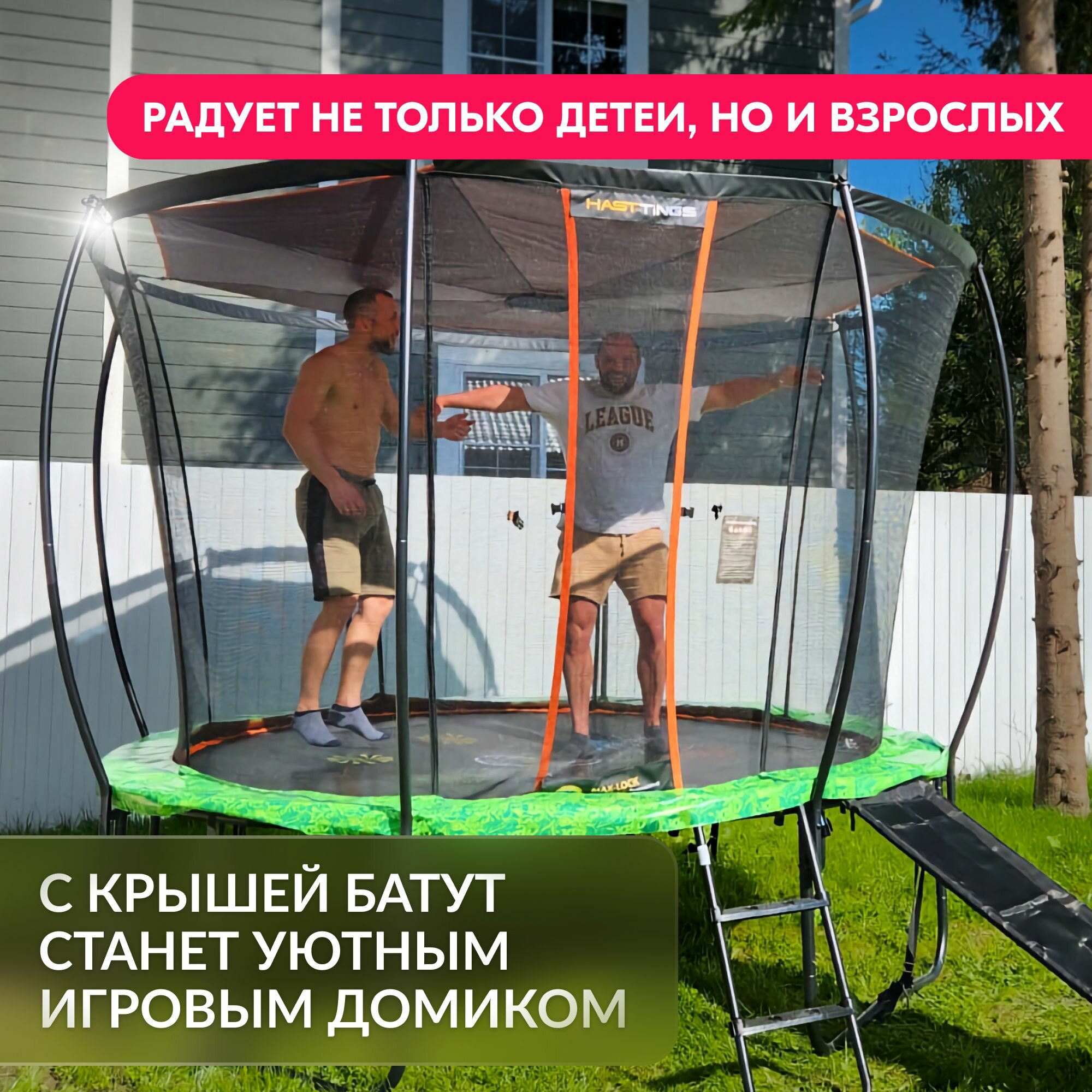 Большой детский батут с защитной сеткой и тентом - крышей Hasttings Dream / каркасный уличный с чехлом / 13 FT