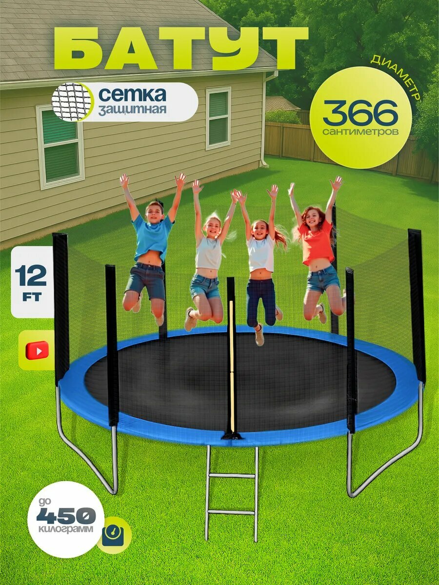 Батут с сеткой каркасный 366см, с лестницей, максимальная нагрузка 450 кг интересное: