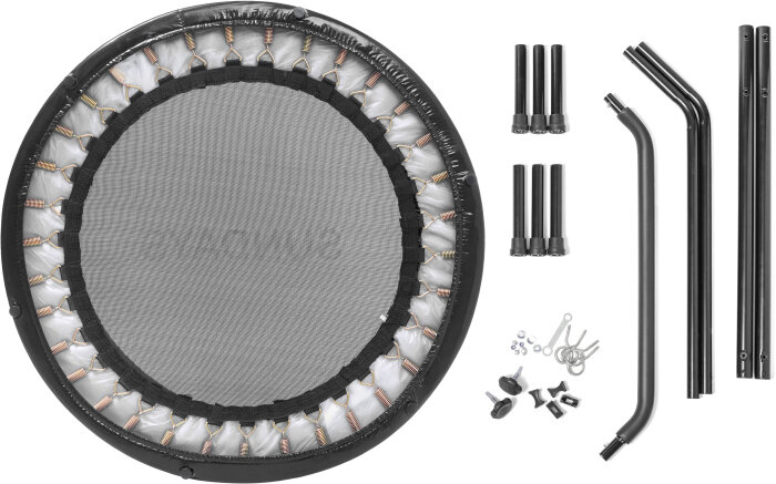 | Состав набора | батут с ручкой - 1 шт: стальной каркас, 34 пружины, защитный мат, ткань для прыжков, 6 обрезиненных ножек. |