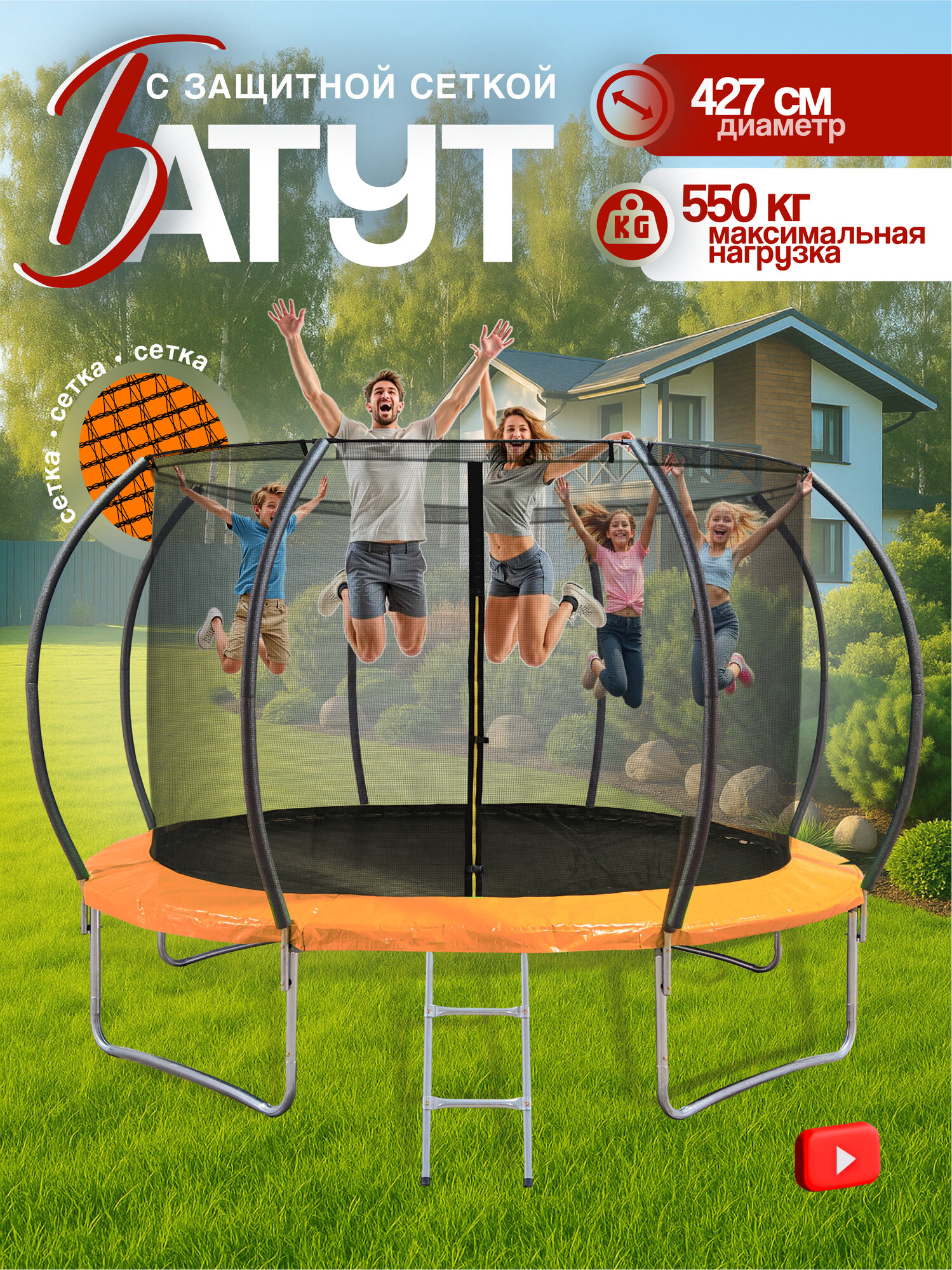 Ниже Вы можете прочитать отзывы на Батут BIG, детский, с сеткой, уличный, нагрузка 500кг, диаметр 420см, ознакомится с подробными характеристиками, посмотреть интересные обзоры и фотографии на Батут BIG, детский, с сеткой, уличный, нагрузка 500кг, диаметр 420см.