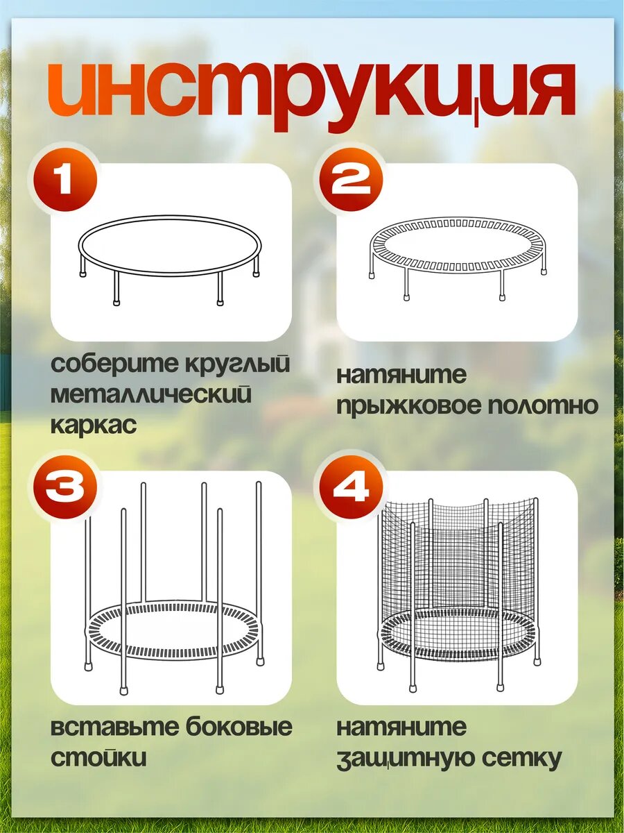 Батут каркасный детский с защитной сеткой уличный, для дачи, 366см интересное: