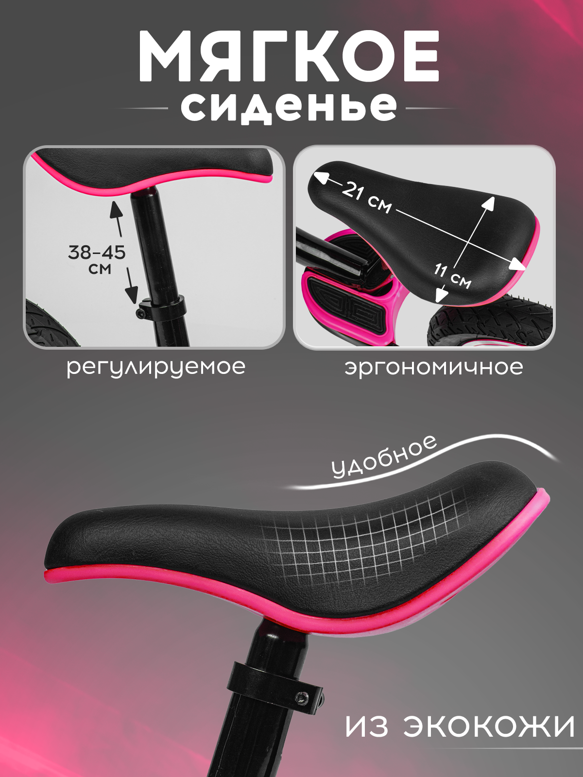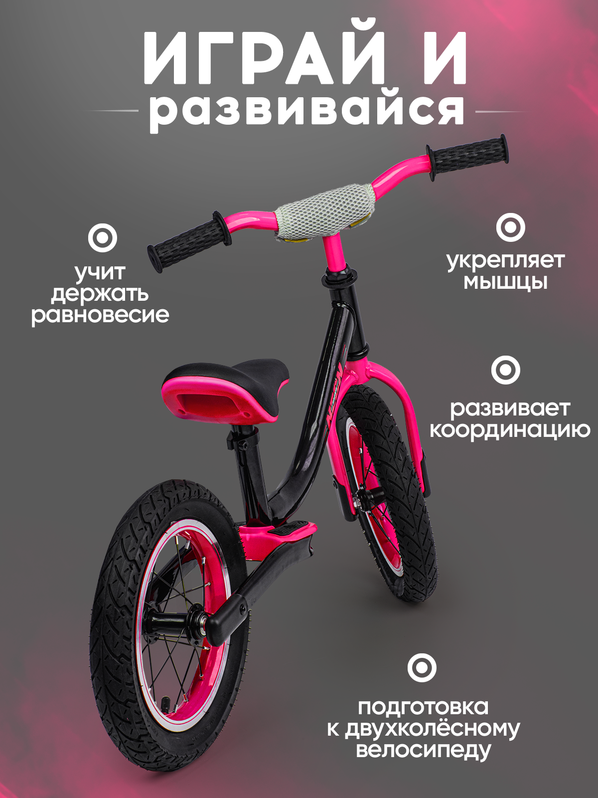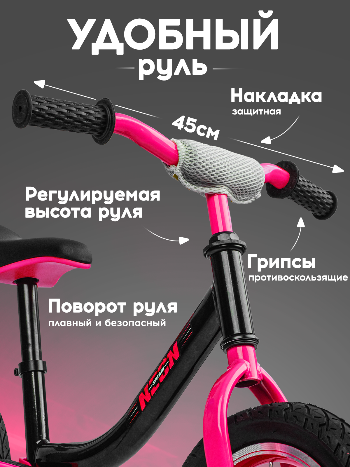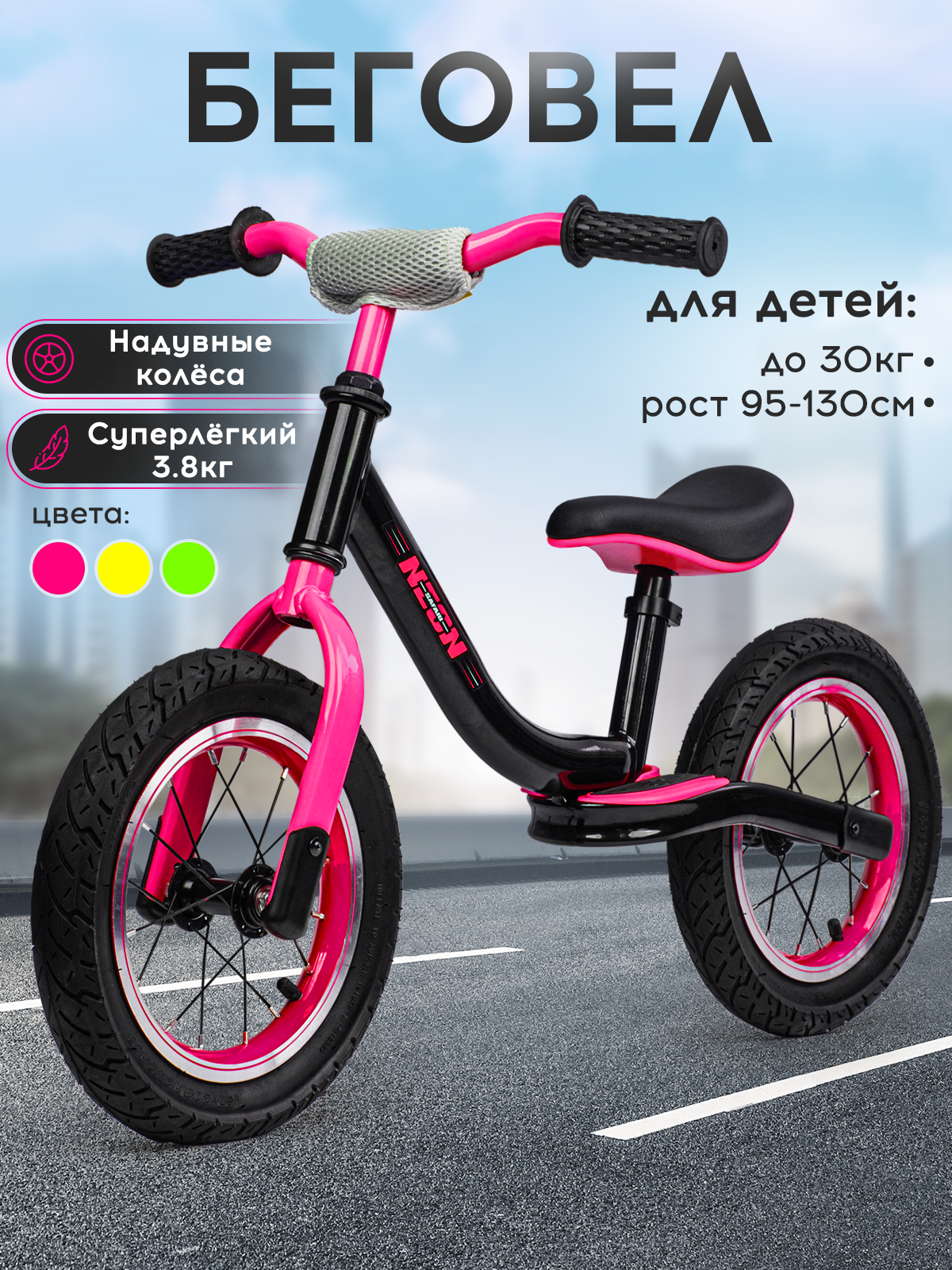 Беговел двухколесный детский SAFARI proff NEON, надувные колеса 12 дюймов, розовый интересное: