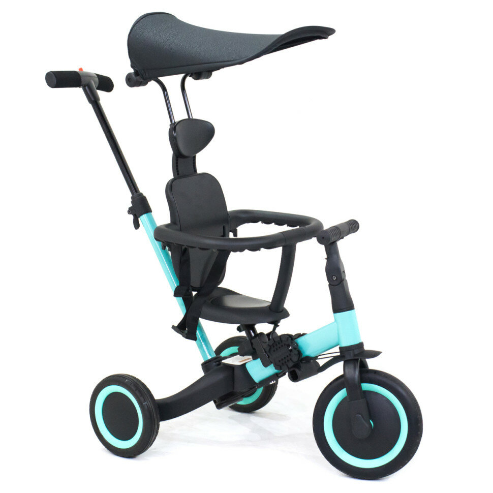 Детский беговел-велосипед 8в1 с крышей и ручкой, зеленый - TR008C-CYAN интересное: