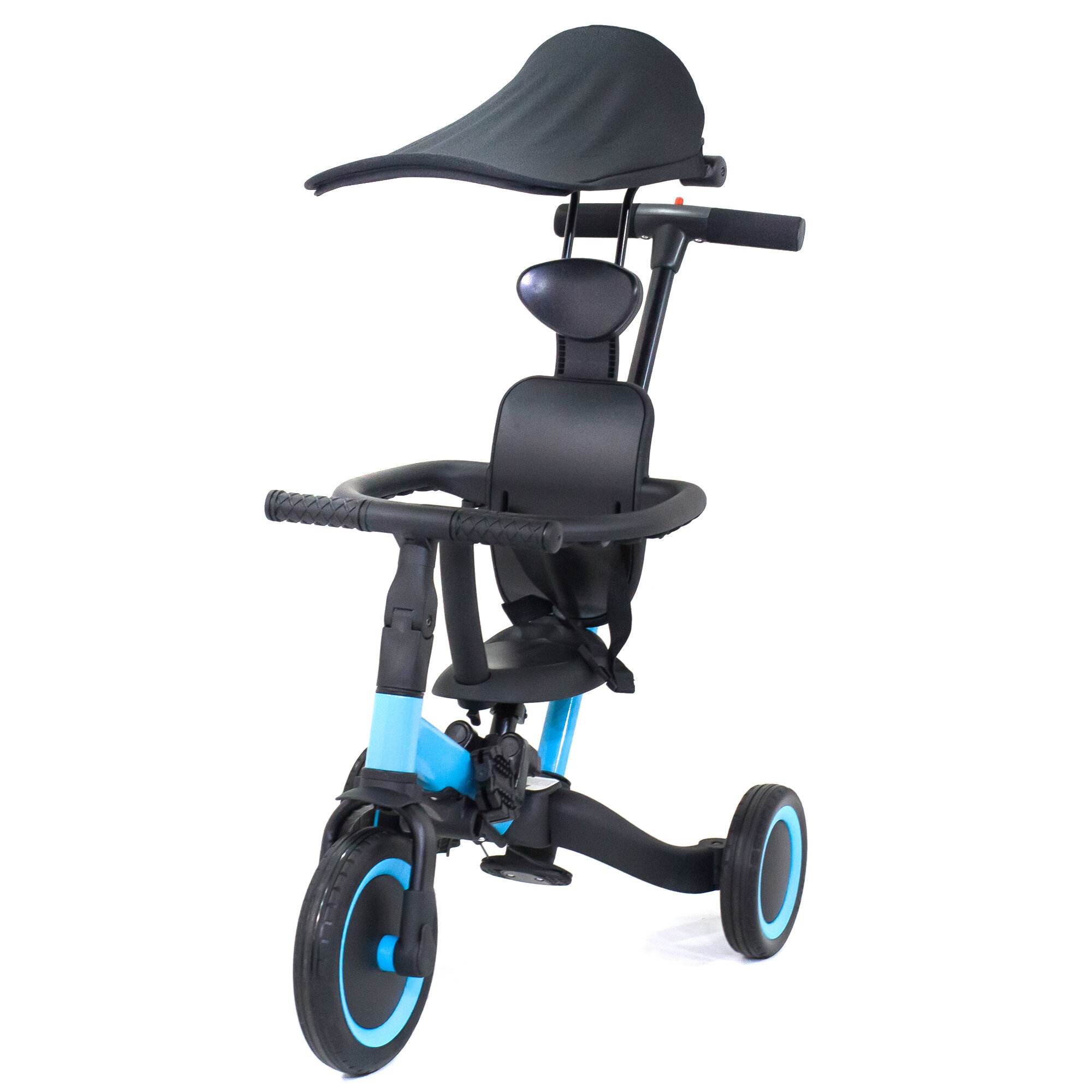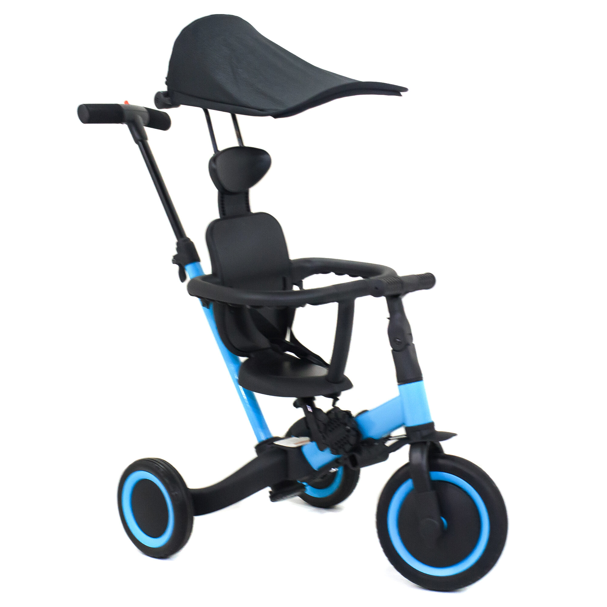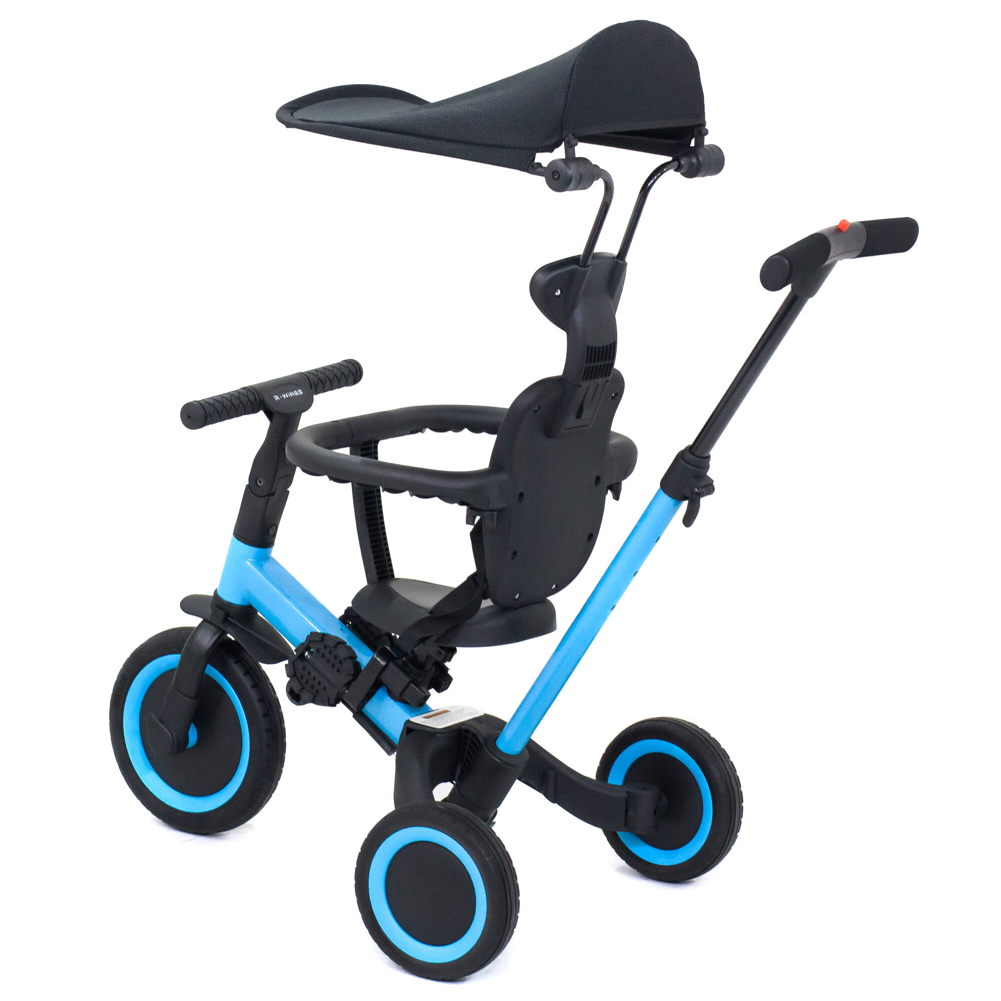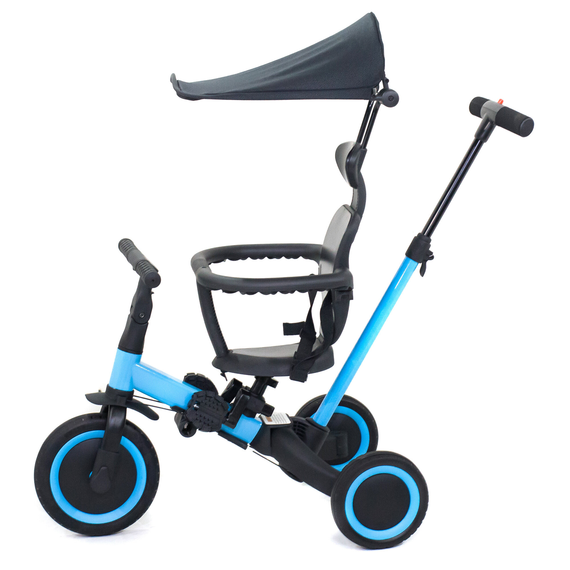 Купить Детский беговел-велосипед 8в1 с крышей и ручкой, синий - TR008C-BLUE
