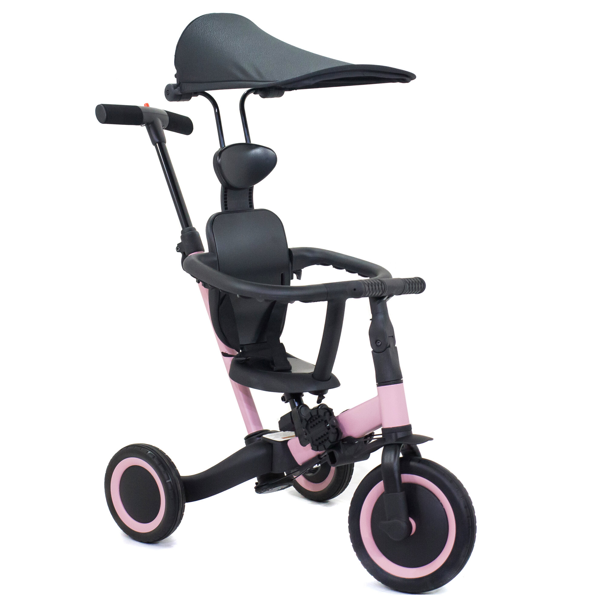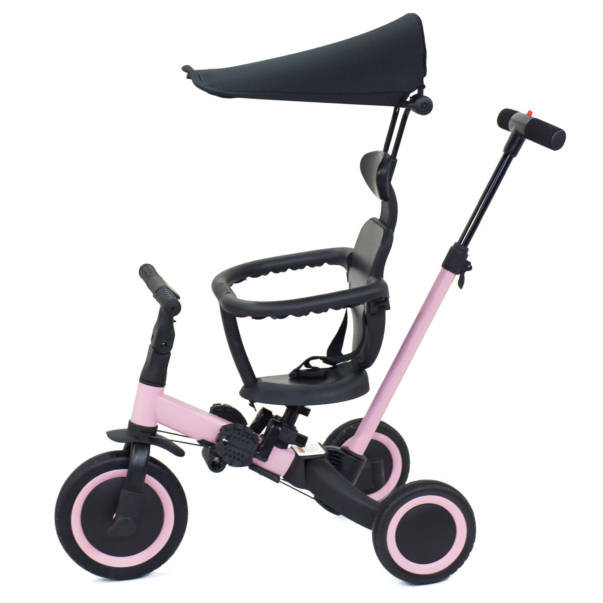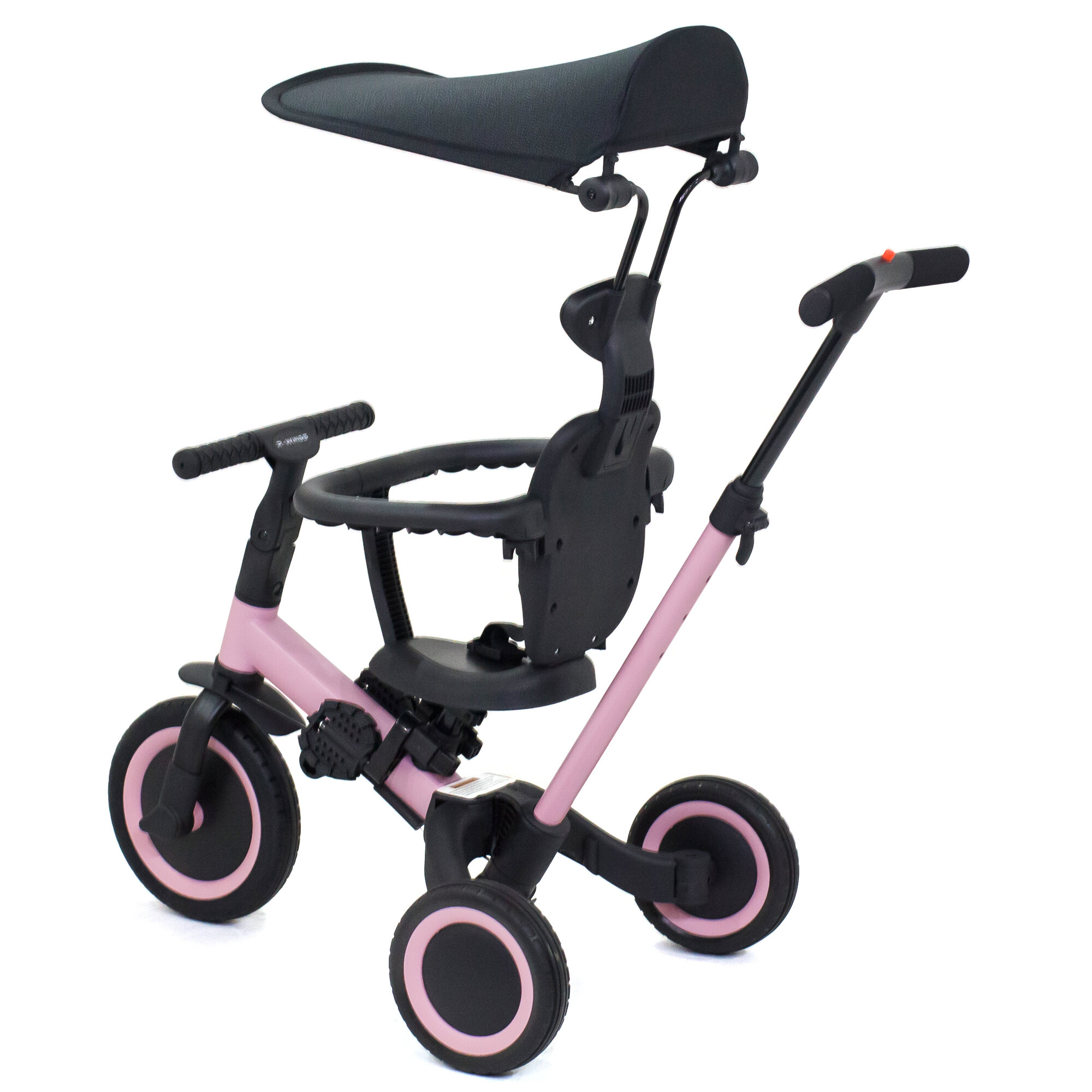 Купить Детский беговел-велосипед 8в1 с крышей и ручкой, розовый - TR008C-PINK