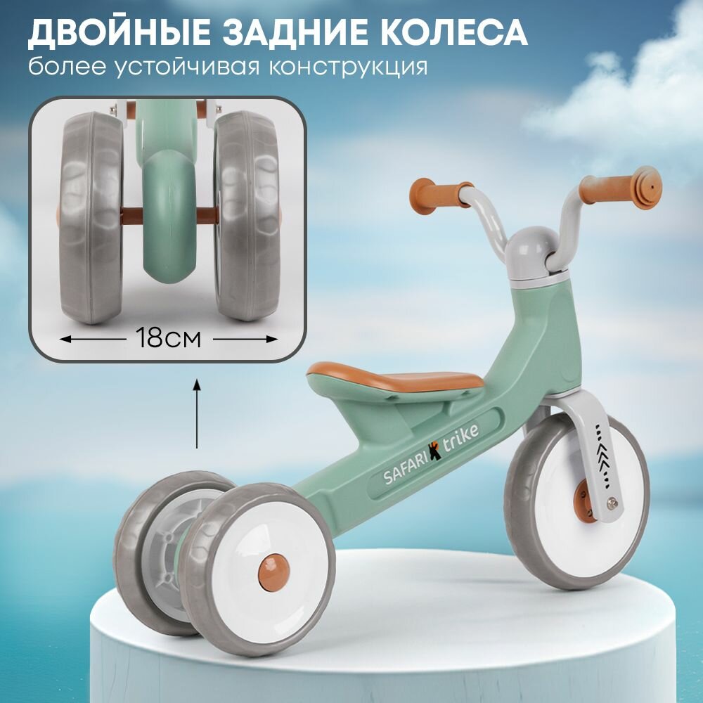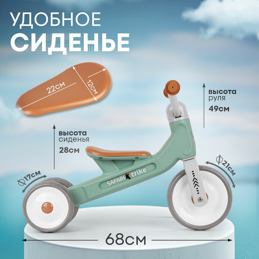 Беговел детский трехколесный Safari Trike, темно-зеленый интересное: