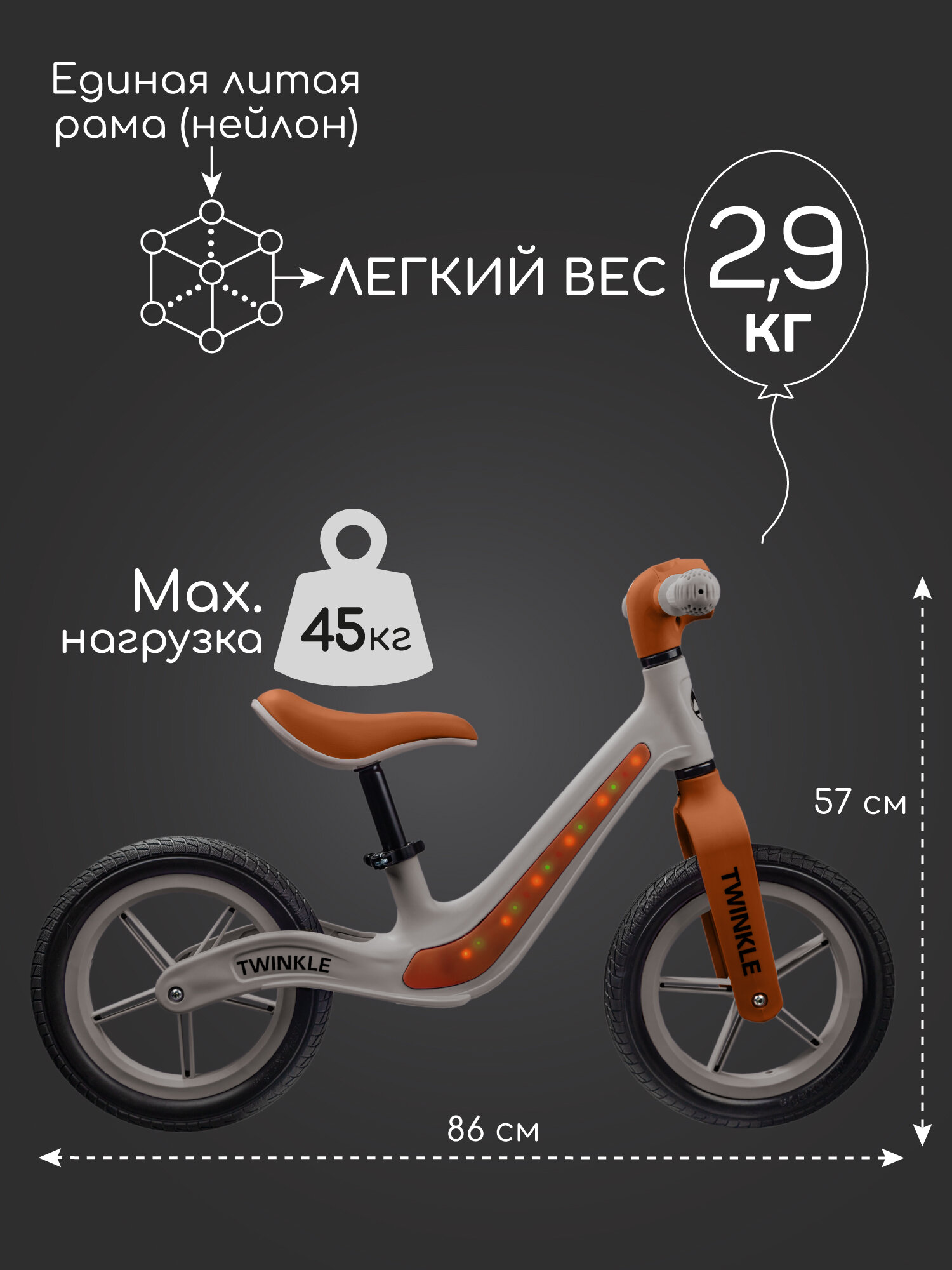 Беговел двухколесный Amarobaby, Twinkle, серый/коричневый интересное: