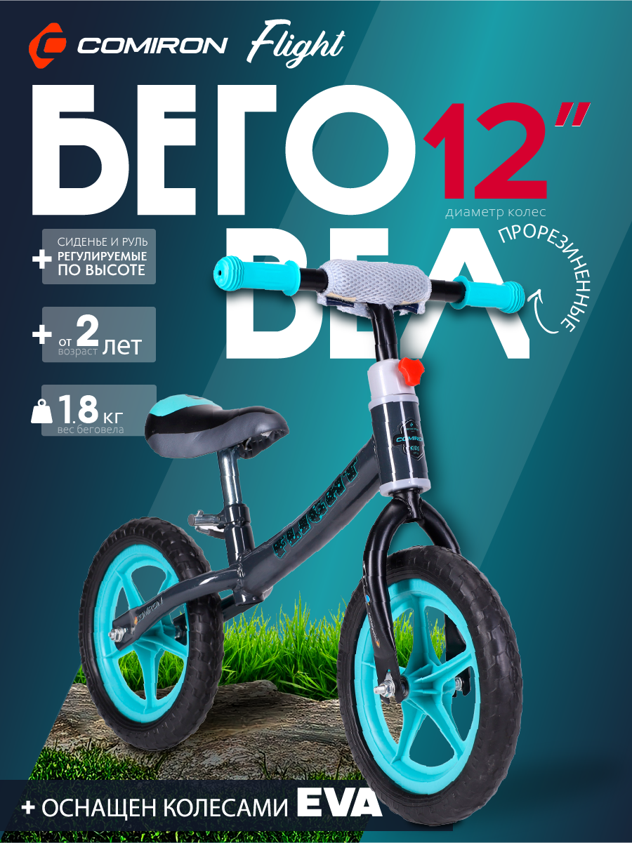 Беговел 12" COMIRON Flight темно-серый, голубой интересное: