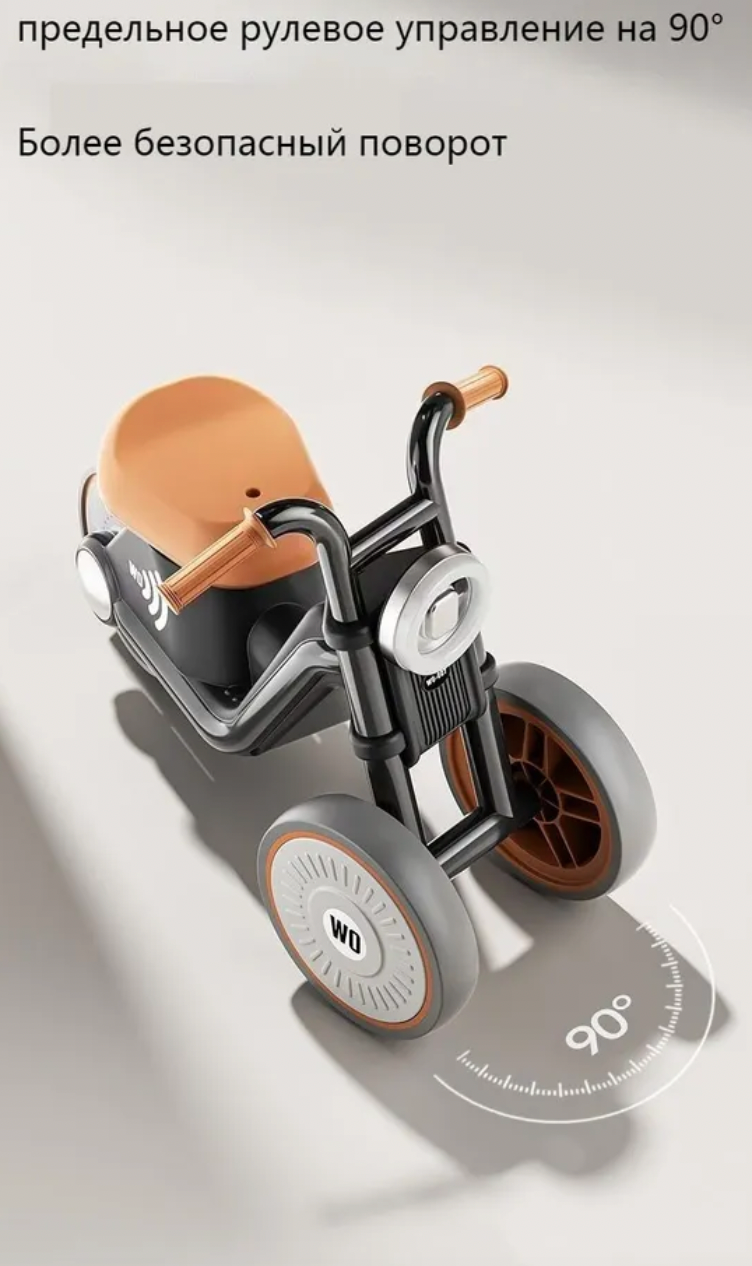 Беговел Harley Prince, со световыми и звуковыми эффектами, кофейный, 1-6 лет, нагрузка до 30 кг