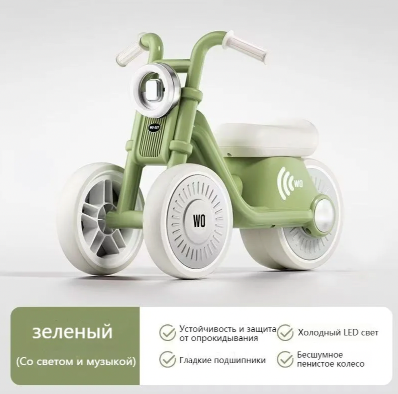 Беговел Benno "Prince" Harley, с музыкой и подсветкой, для детей 1-6 лет, зелёный интересное: