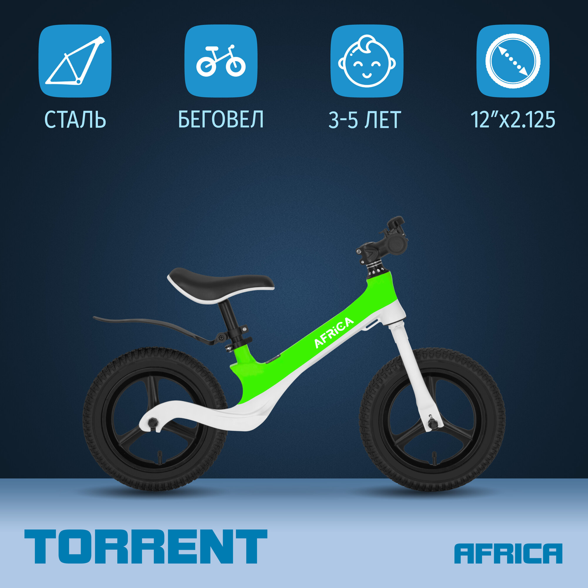 Детский беговел TORRENT Africa (колеса 12д, рама сталь, надувные колеса) интересное: