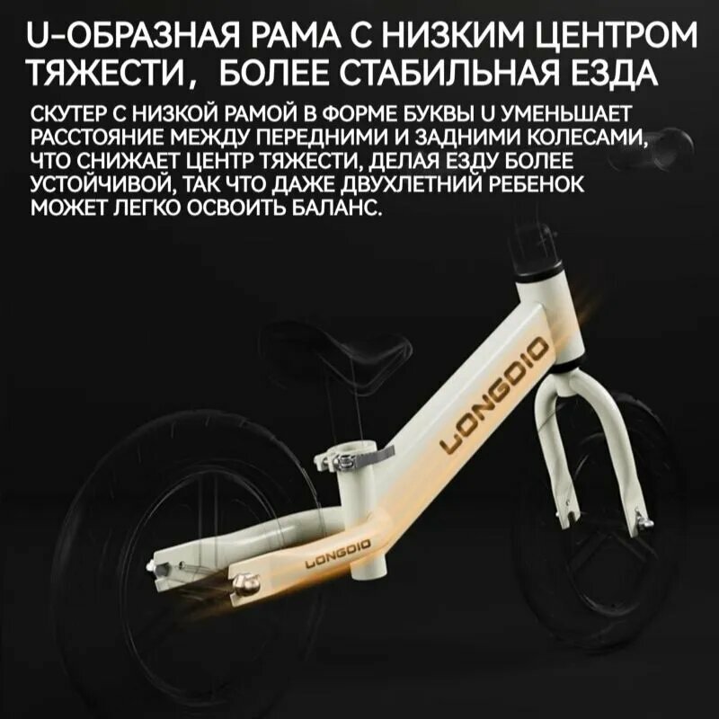 Детский беговел для детей 2-8 лет, 12 дюймов, стальная рама, надувные колеса, регулируемое сиденье, унисекс, белый