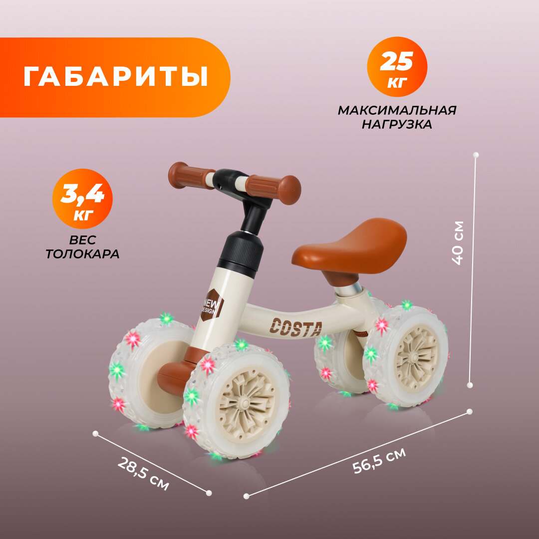 Детский беговел Costa 06, бежевый интересное: