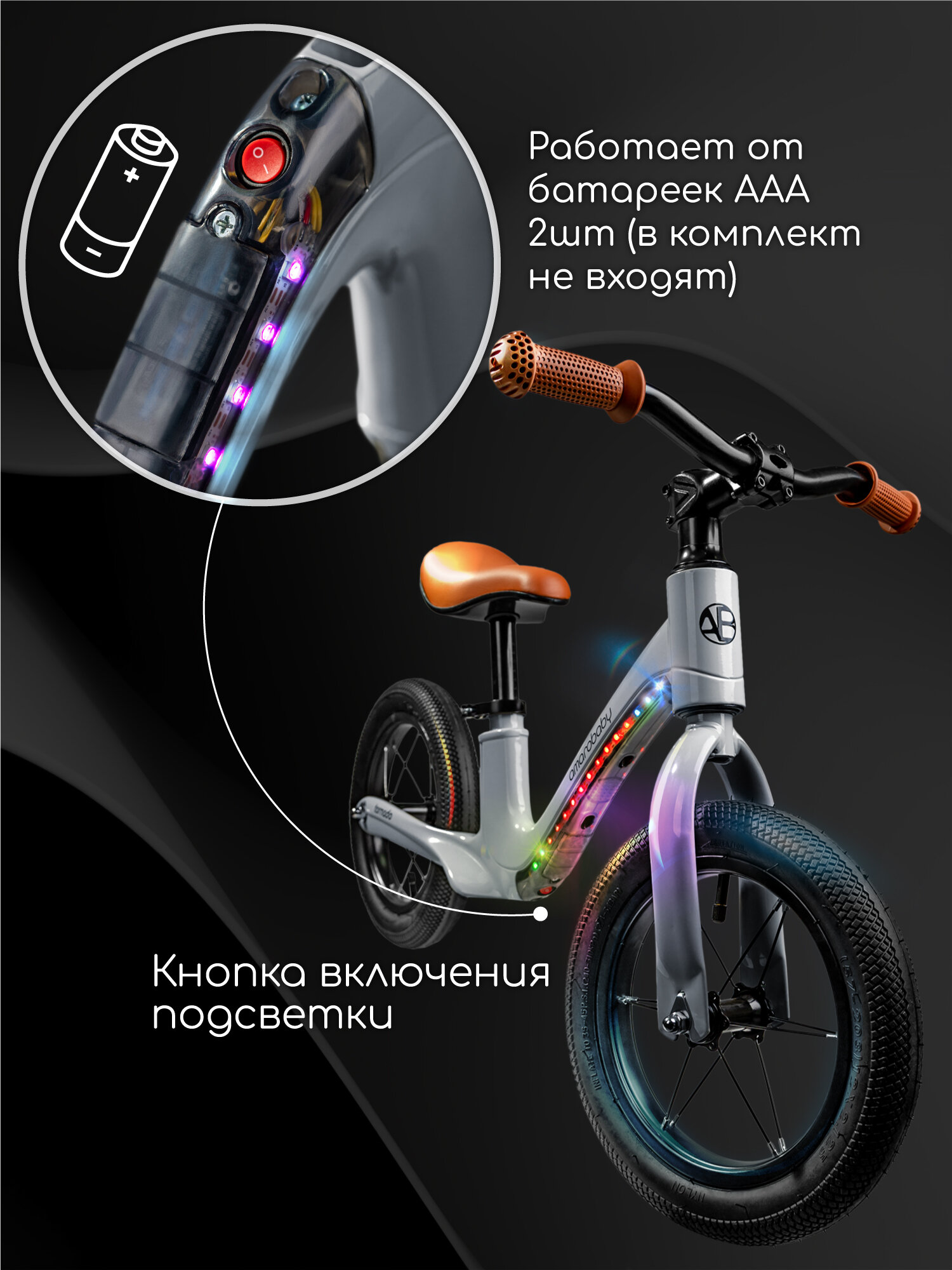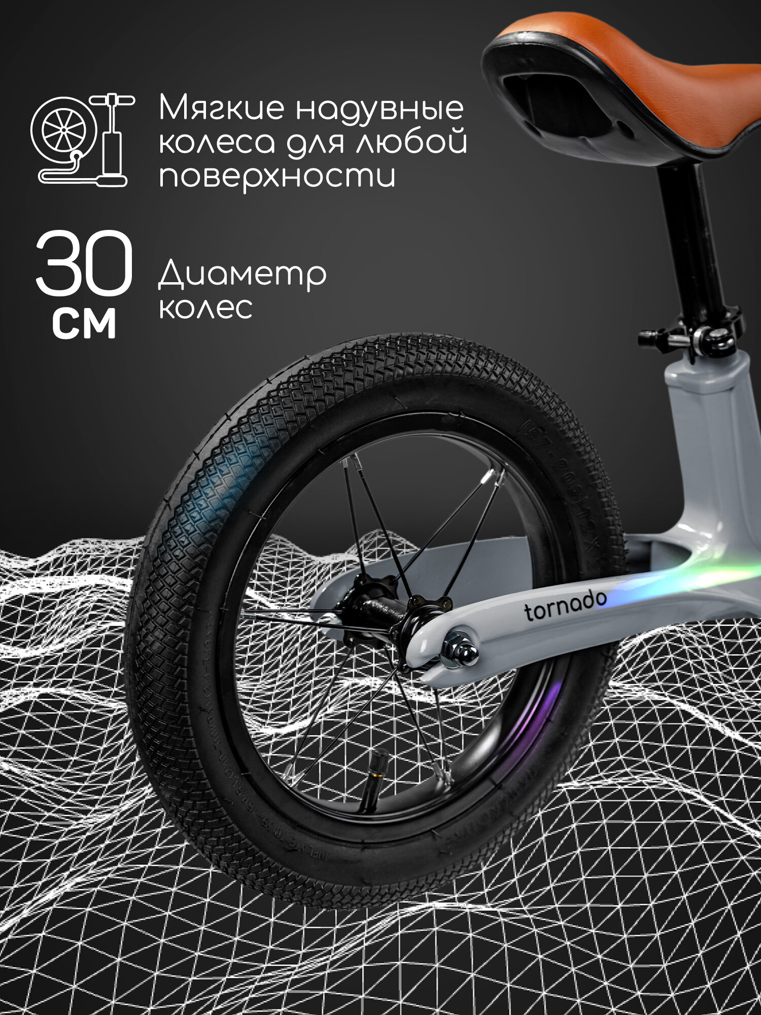 Двухколесный беговел Amarobaby Tornado, серый интересное: