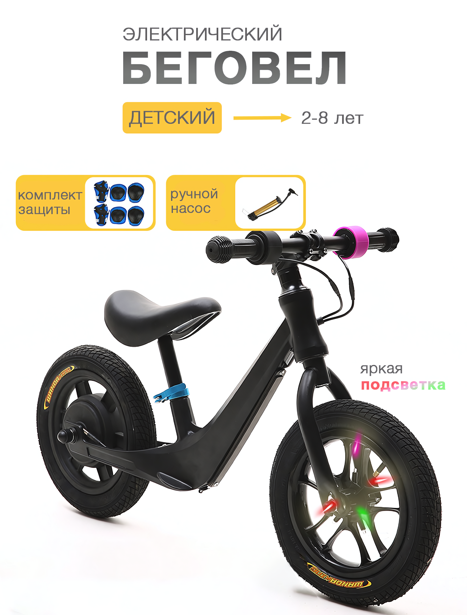 Электробеговел для детей от 2-х лет, колеса 12 дюймов, цвет черный интересное: