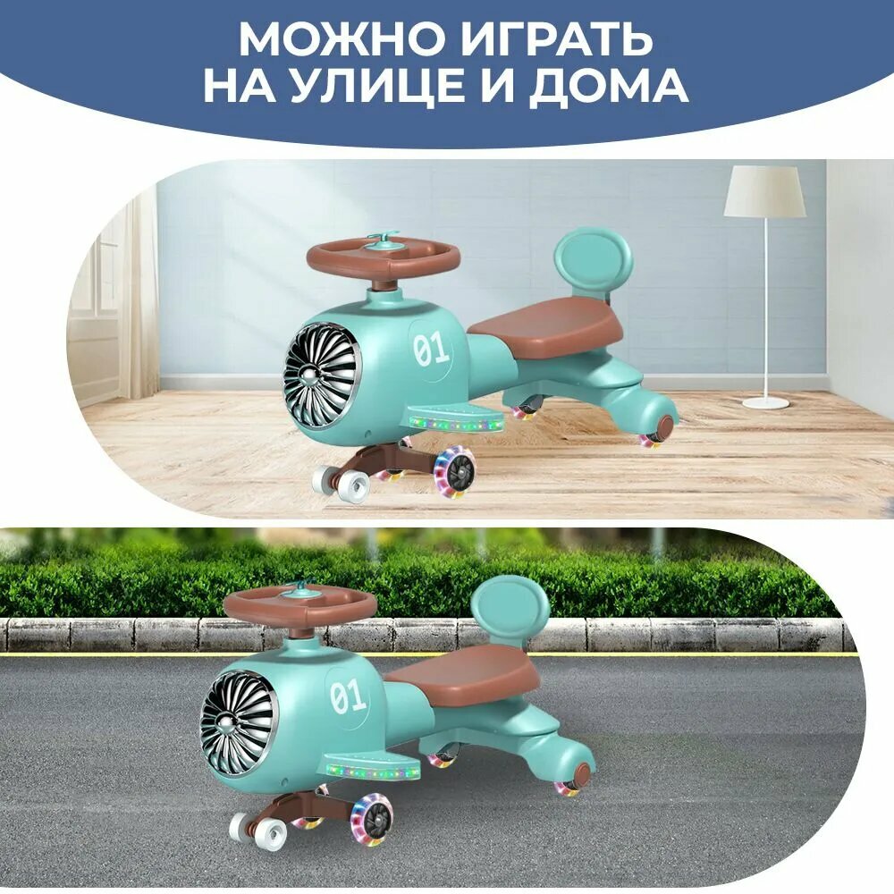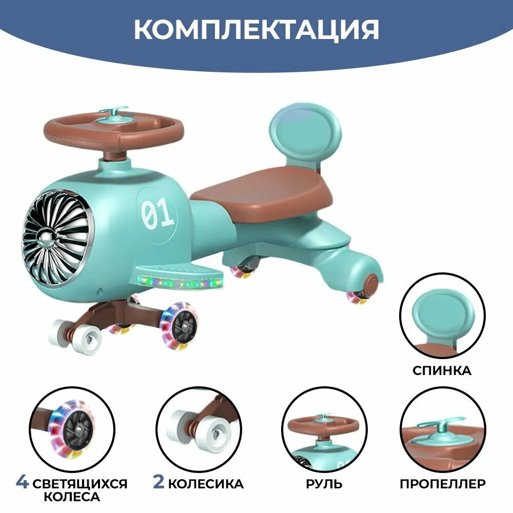 Вертолёт-самоход LESTI, беговел с подсветкой и музыкой, зелёный интересное: