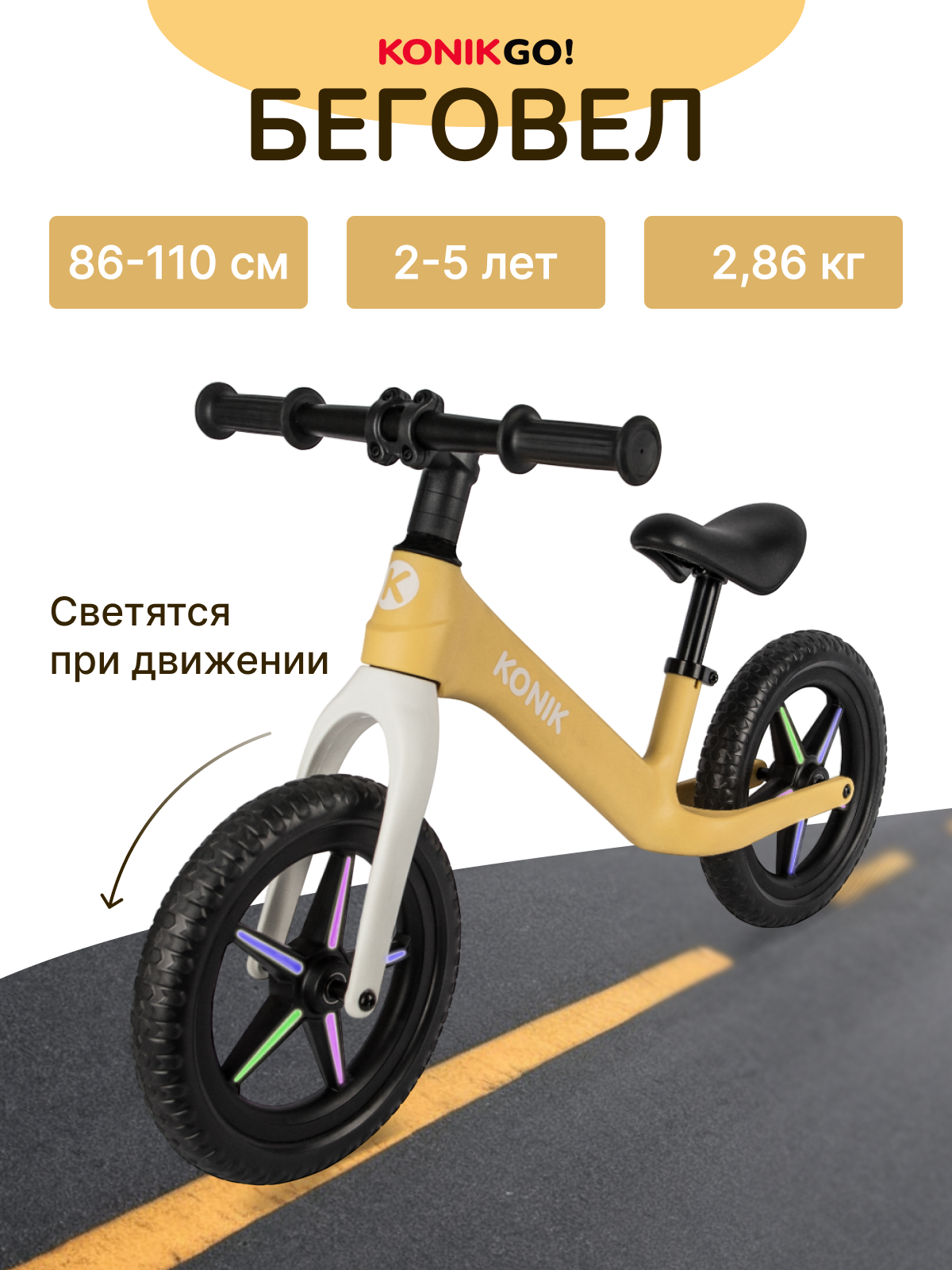 Беговел детский от 2 лет, KONIK! , светящиеся колеса, желтый, с регулируемым сиденьем интересное: