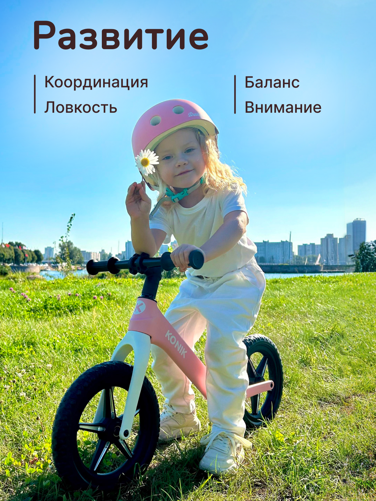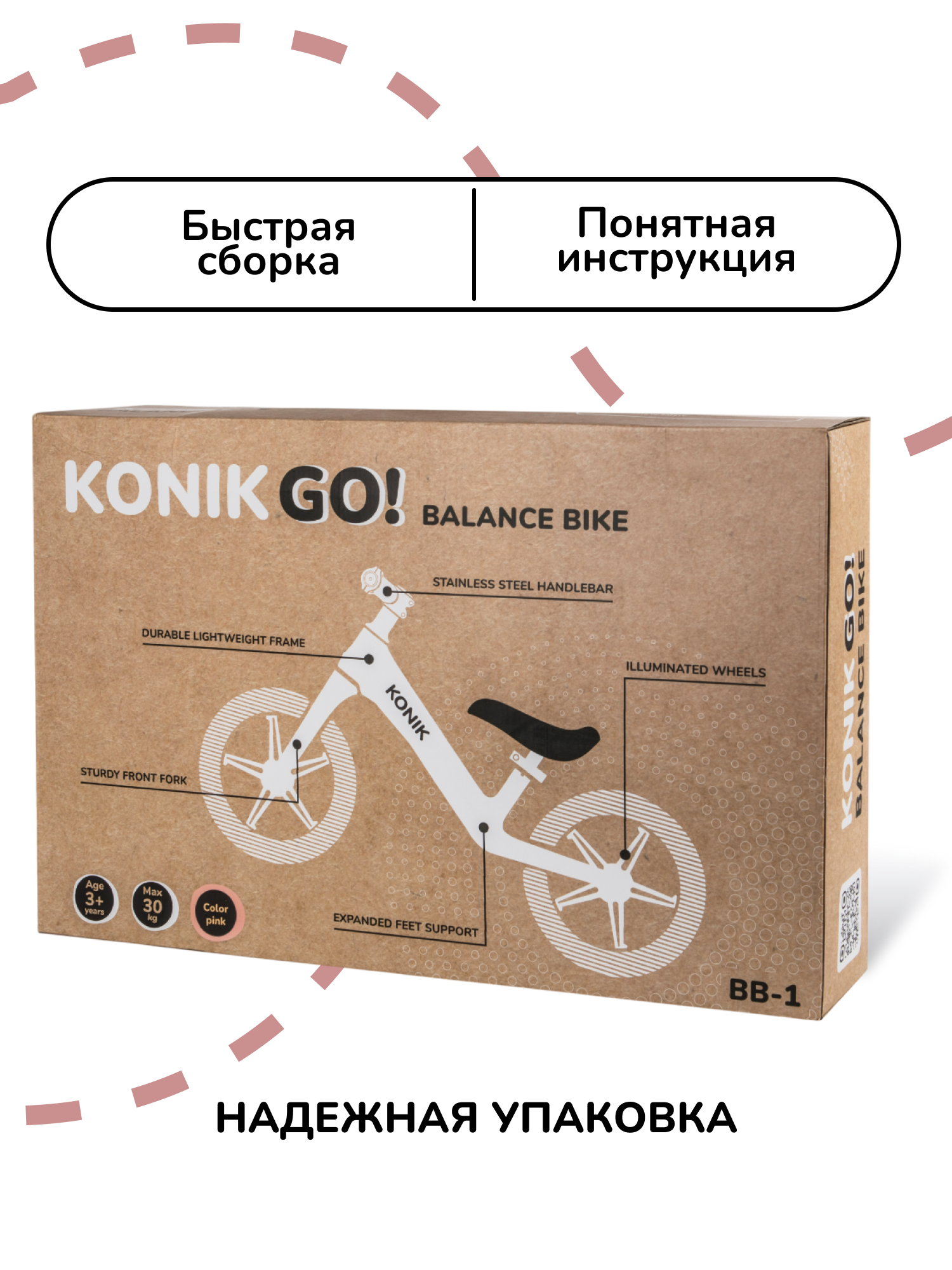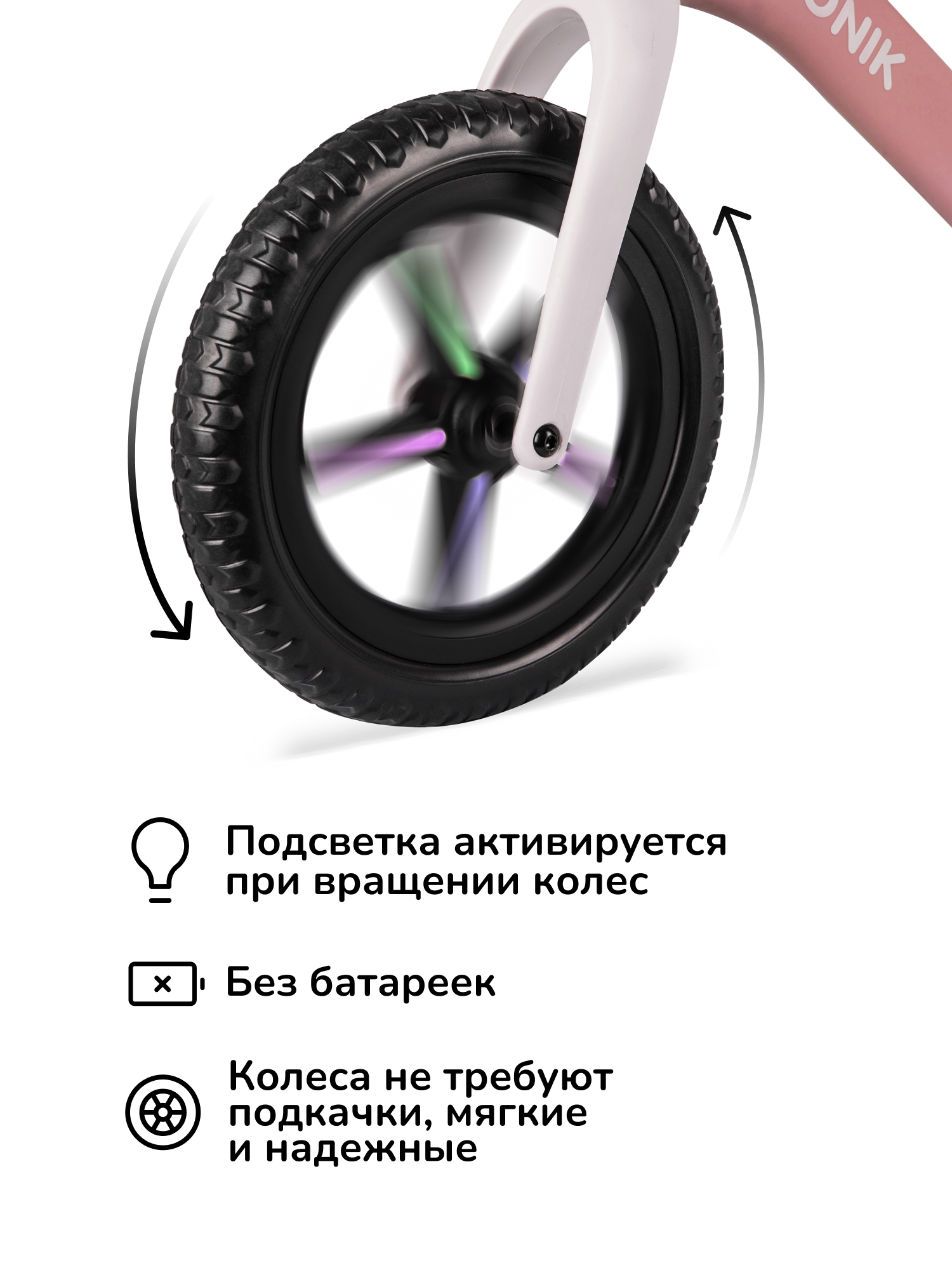 Беговел детский от 2 лет, KONIK! , светящиеся колеса, розовый, с регулируемым сиденьем интересное: