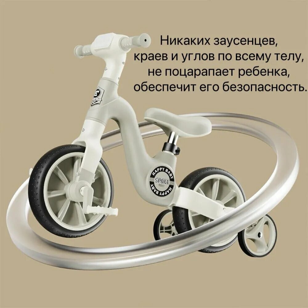 Купить Беговел-трансформер "2 в 1", для детей от 1 года, Поролоновое колесо, белый/хаки,Со светом