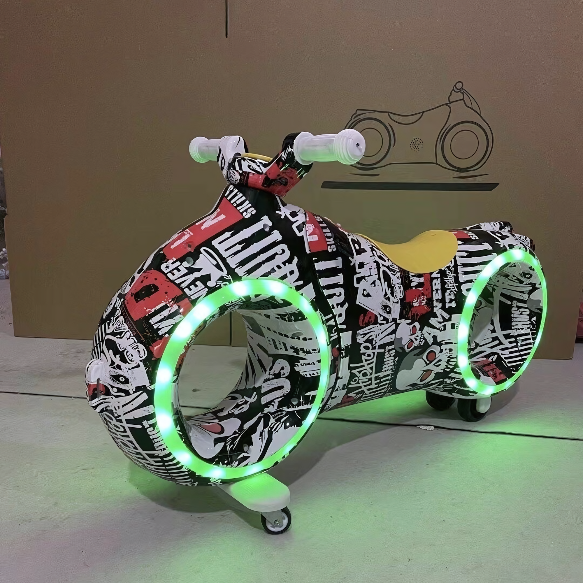 СохранитьБеговел детский от 2 до 6 лет с музыкой и светом, цвет черный граффити интересное: