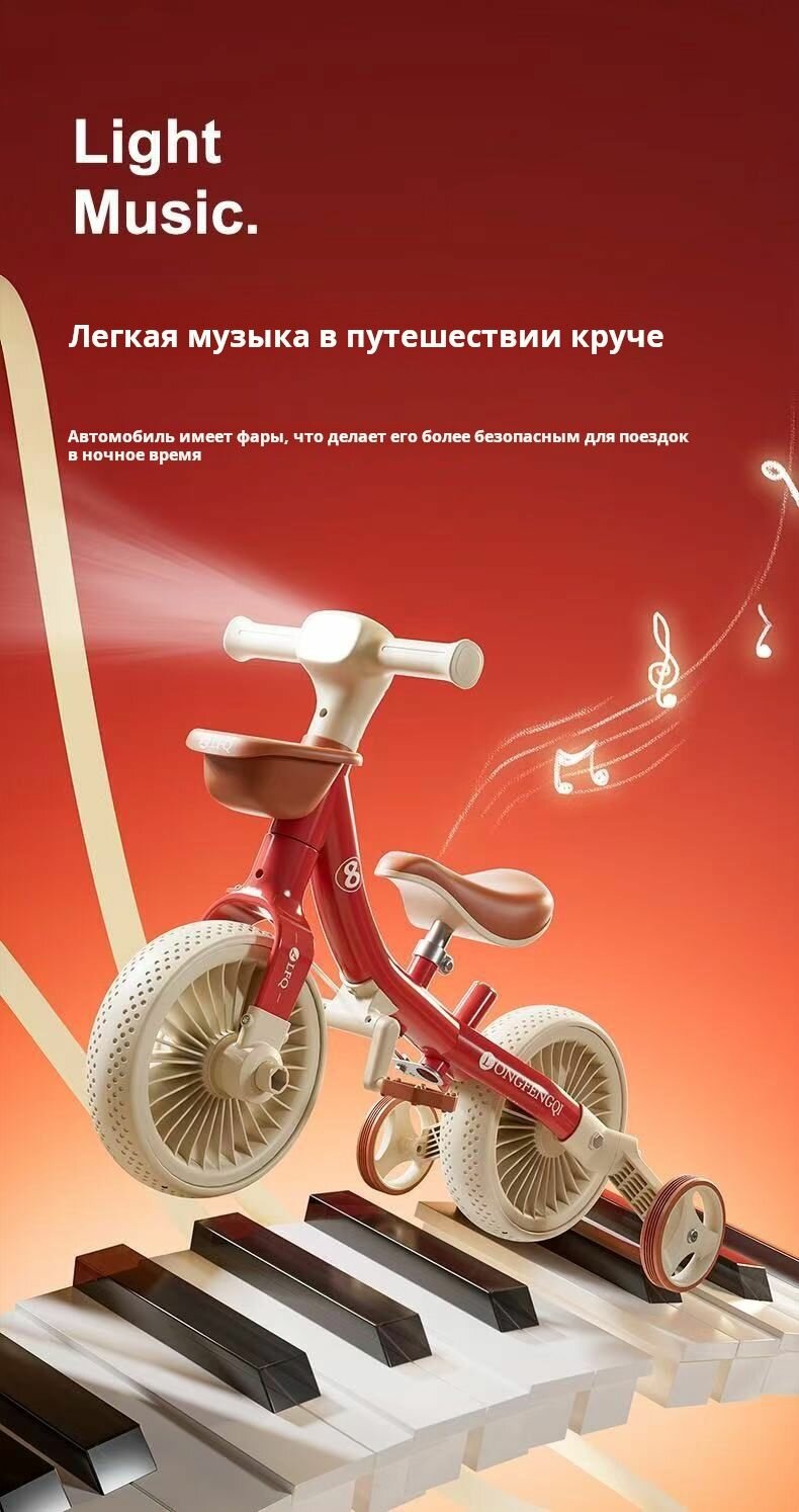 Беговел 2-в-1 для детей 2-8 лет: балансир+трехколесный, регулируемый рост, антиударная рама, резиновые колеса, музыка интересное: