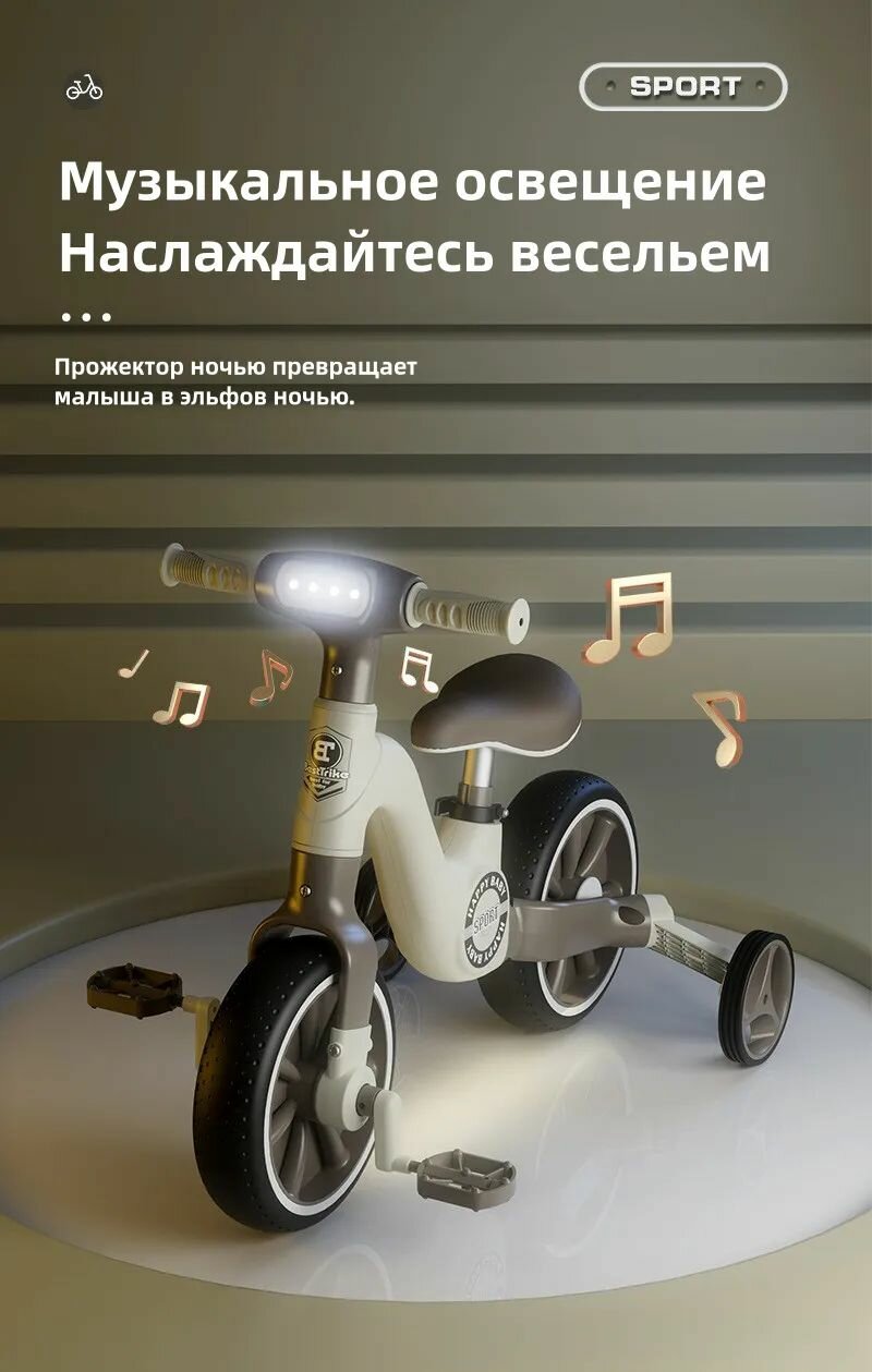 Беговел-велосипед 3-в-1 J342, музыкальный, для детей 1- 6 лет, сталь, 4,5 кг интересное: