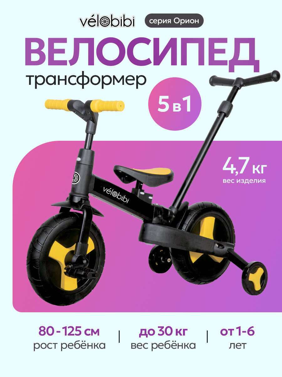 Велосипед-трансформер с ручкой "Орион" нагрузка до 30 кг, для детей от 1+, черный с желтым интересное: