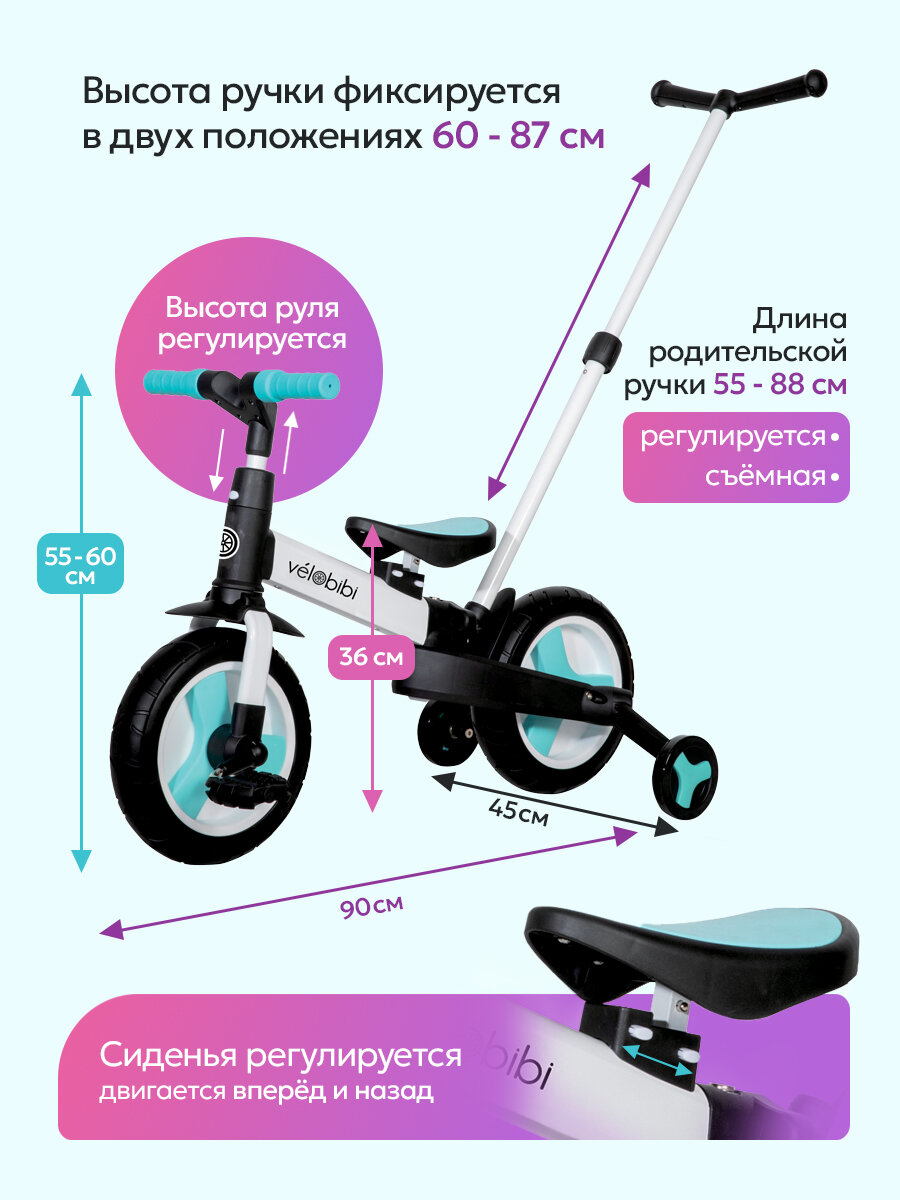 Велосипед-трансформер с ручкой "Орион" нагрузка до 30 кг, для детей от 1+, белый с голубым интересное: