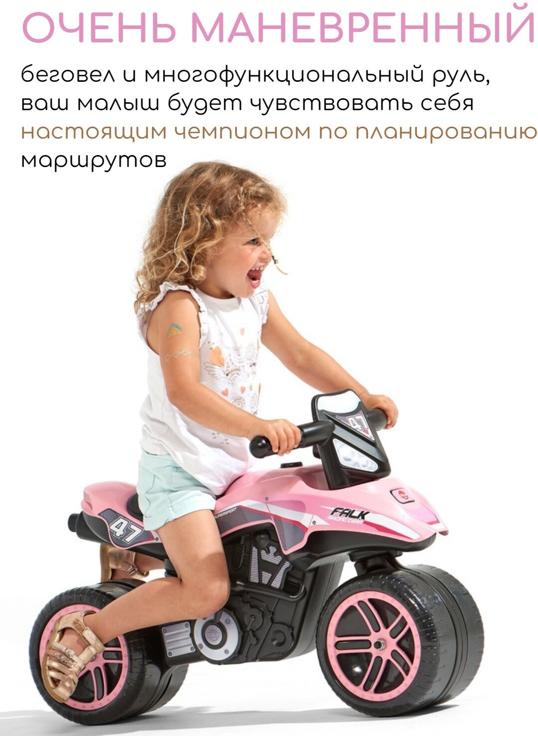 Мотоцикл-беговел FALK с бесшумными колесами; розовый интересное: