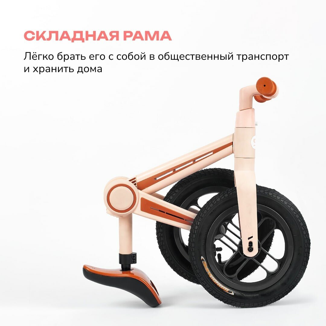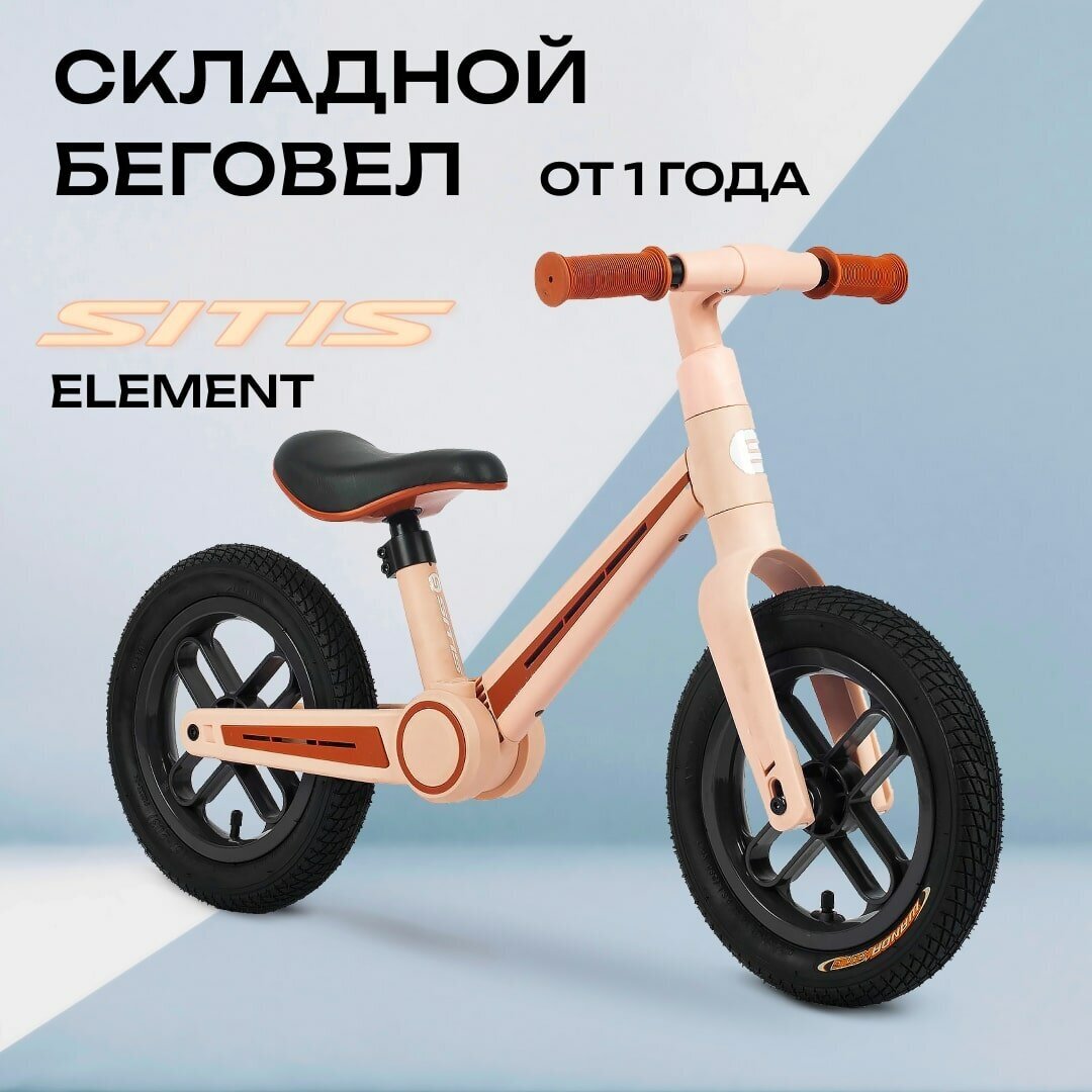 Беговел детский, двухколёсный Sitis Element 12 складной, от 1 до 2 лет, надувные колеса, pink, рост 85-100 см интересное: