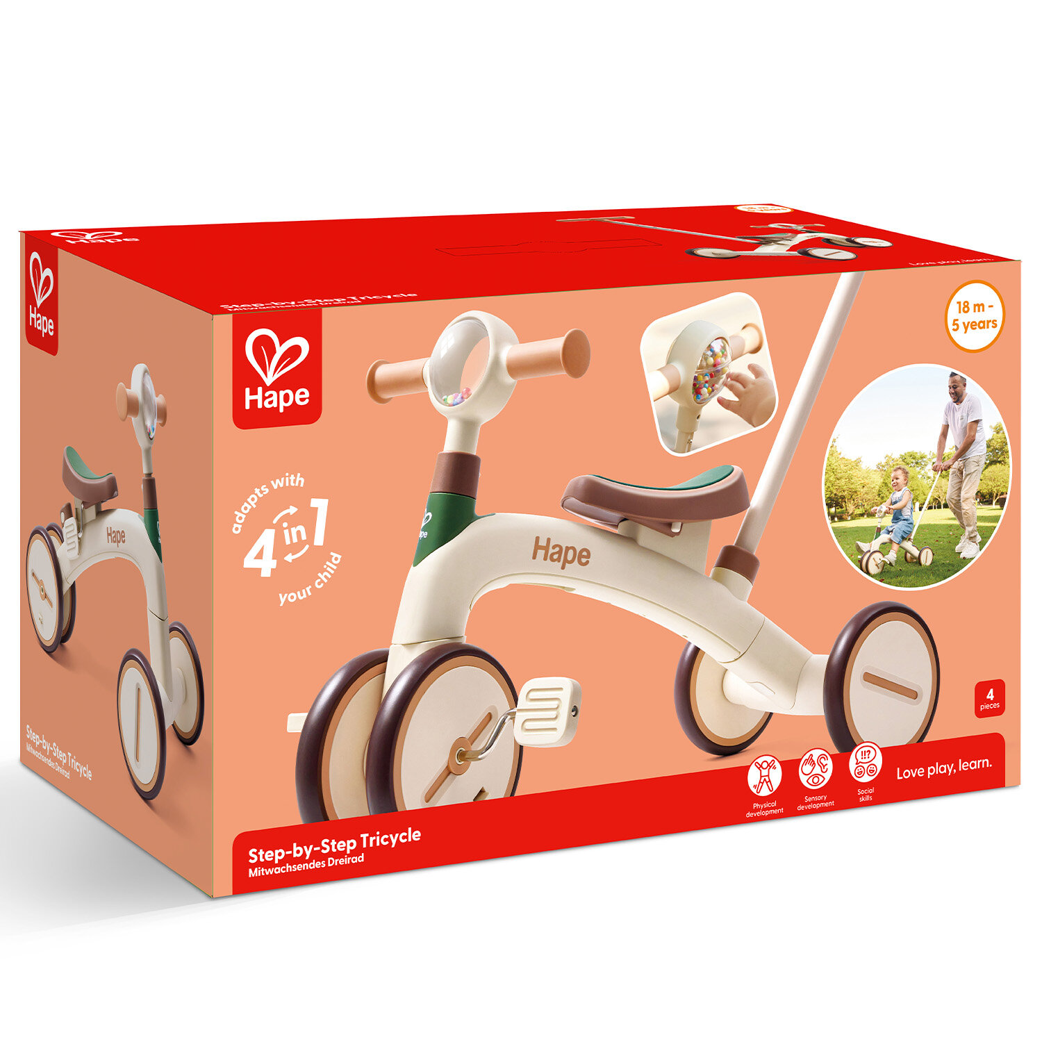 Купить Беговел Hape "Step-by-Step" 3в1 - беговел, каталка, велосипед E1225_HP