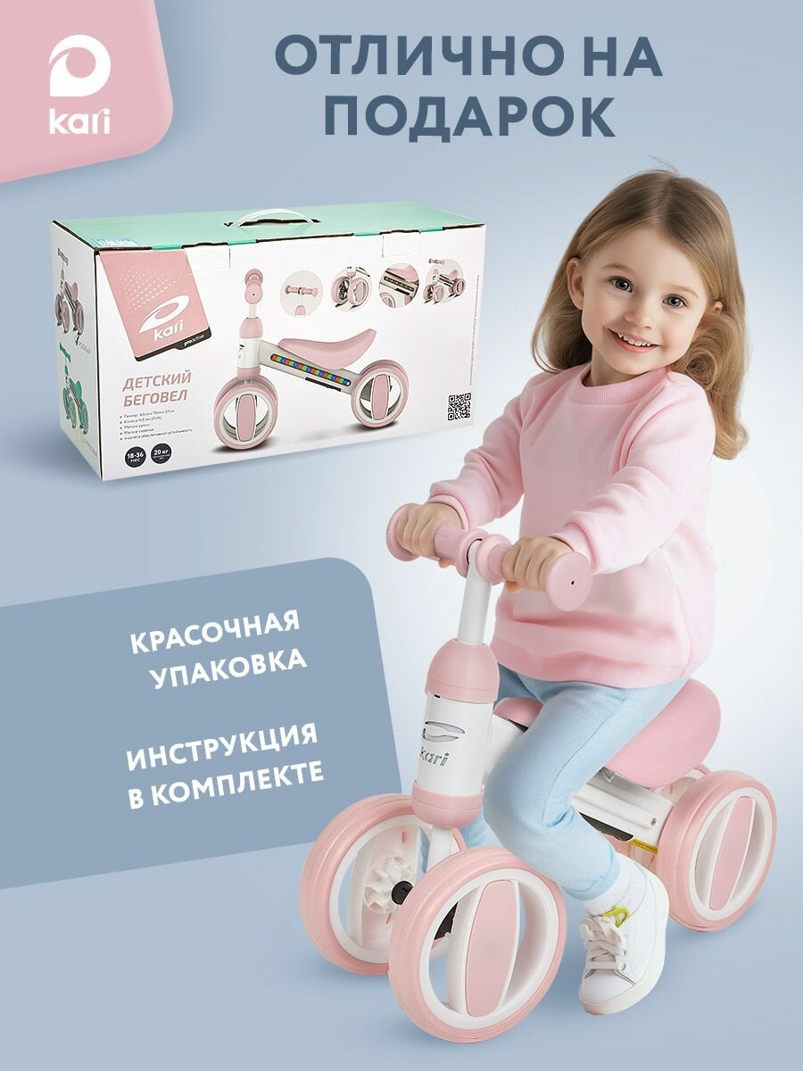 Купить Беговел детский четырехколесный со светящейся рамой, розовый