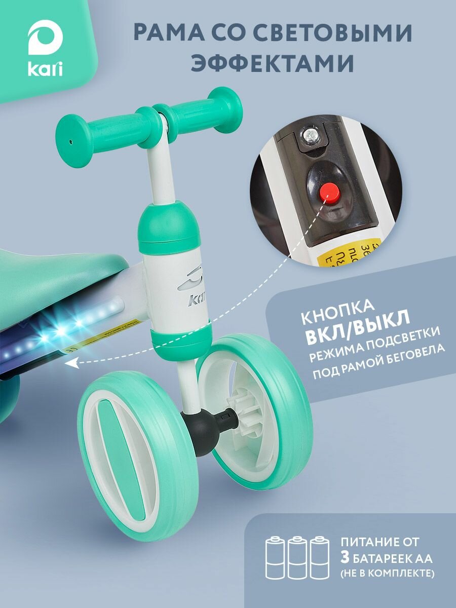 Беговел детский четырехколесный со светящейся рамой, зеленый интересное: