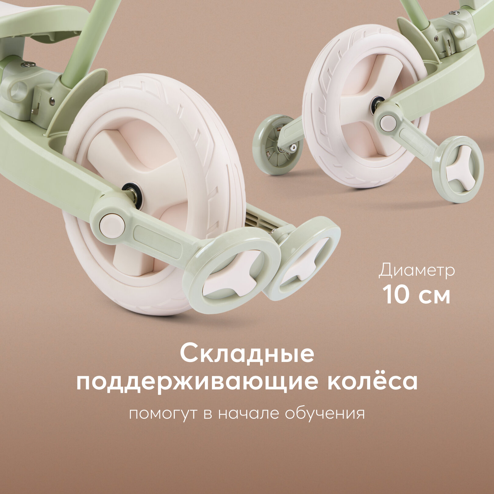50051, Беговел-трансформер KIDLY от Happy Baby, беговел двухколёсный, четырехколёсный велосипед, 3в1, оливково-бежевый интересное: