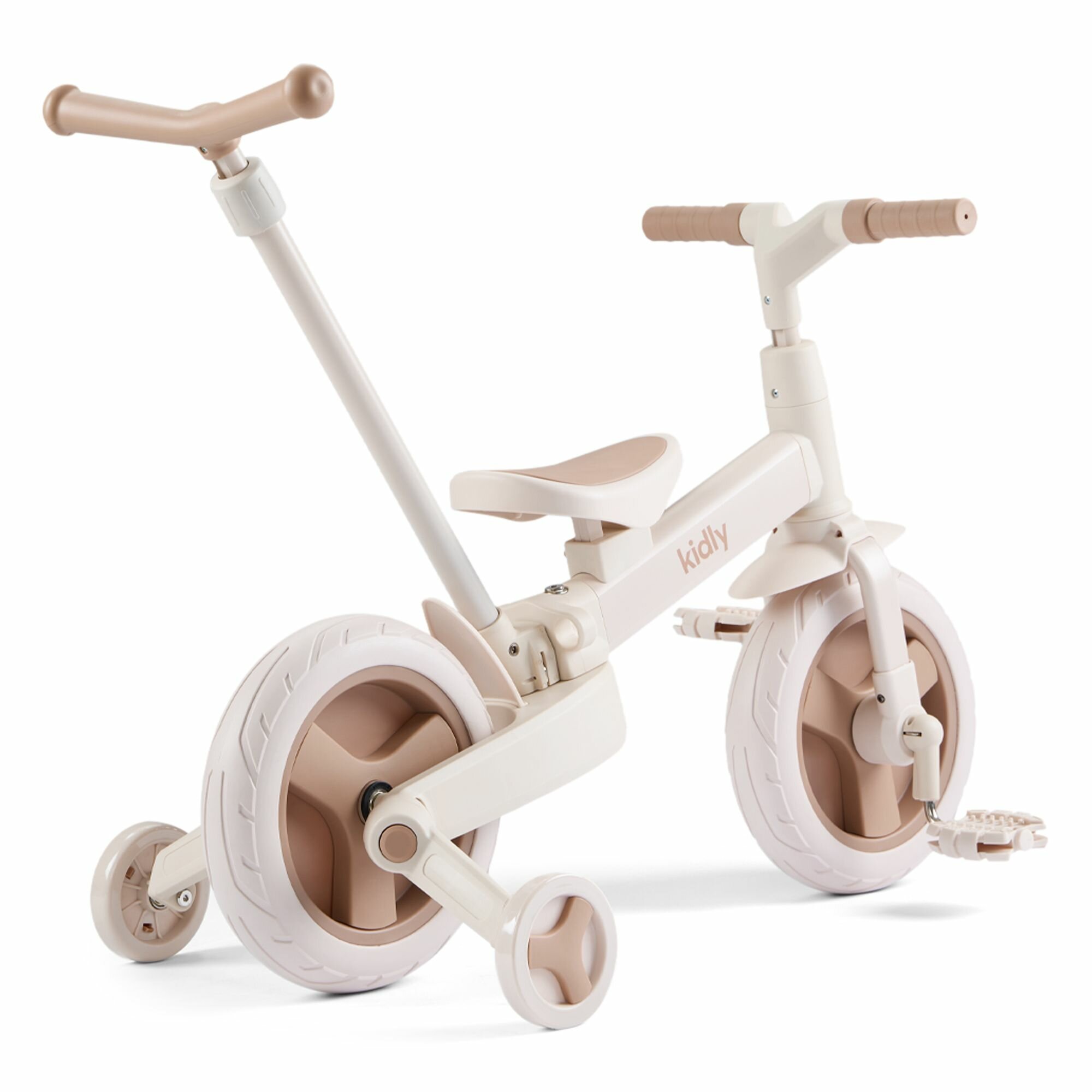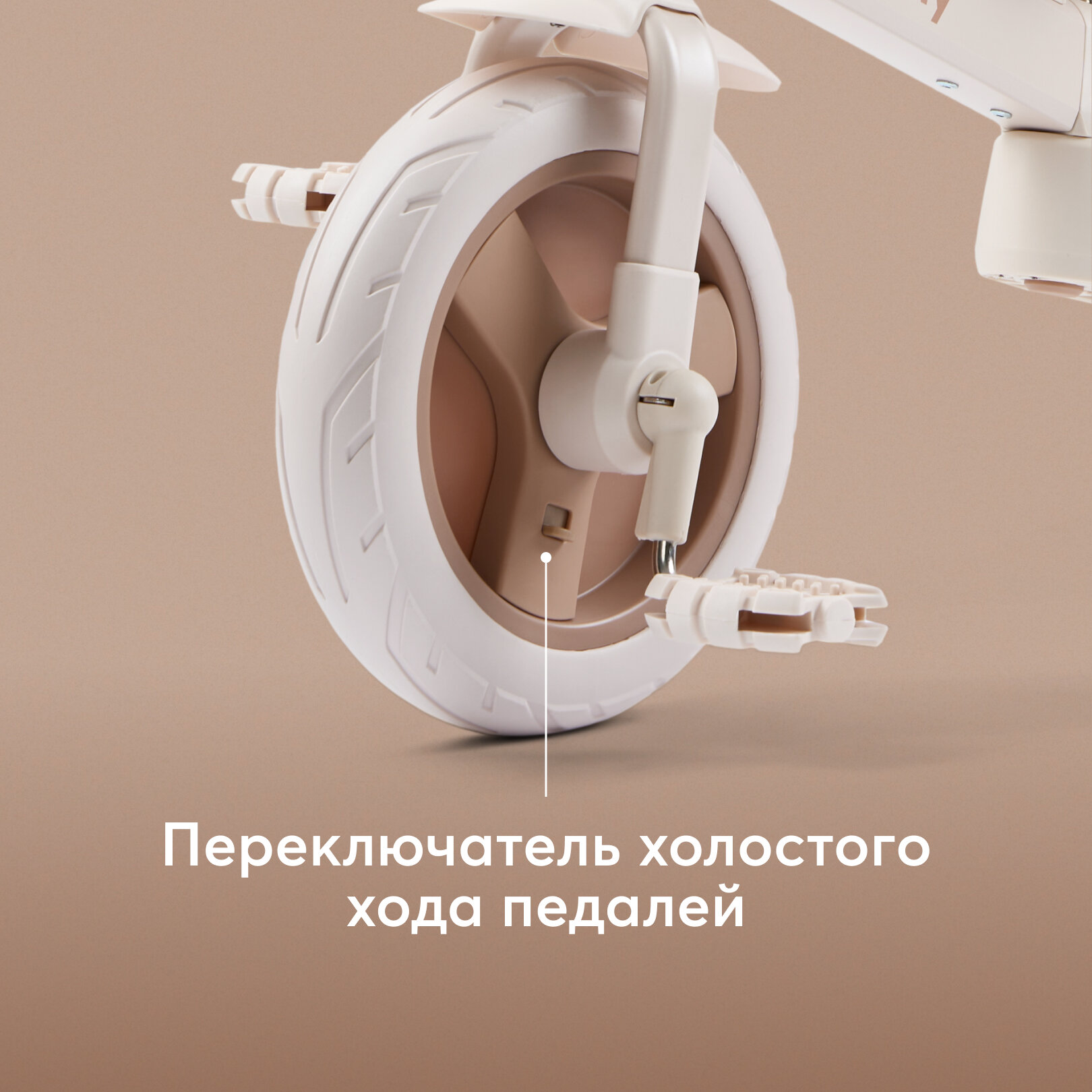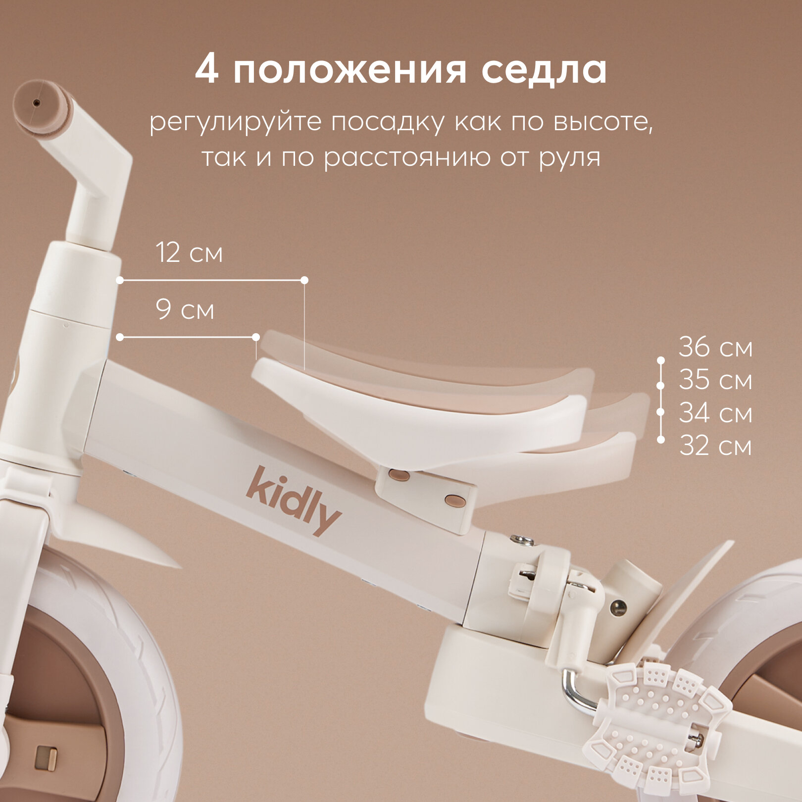 50051, Беговел-трансформер KIDLY от Happy Baby, беговел двухколёсный, четырехколёсный велосипед, 3в1, бежево-коричневый интересное: