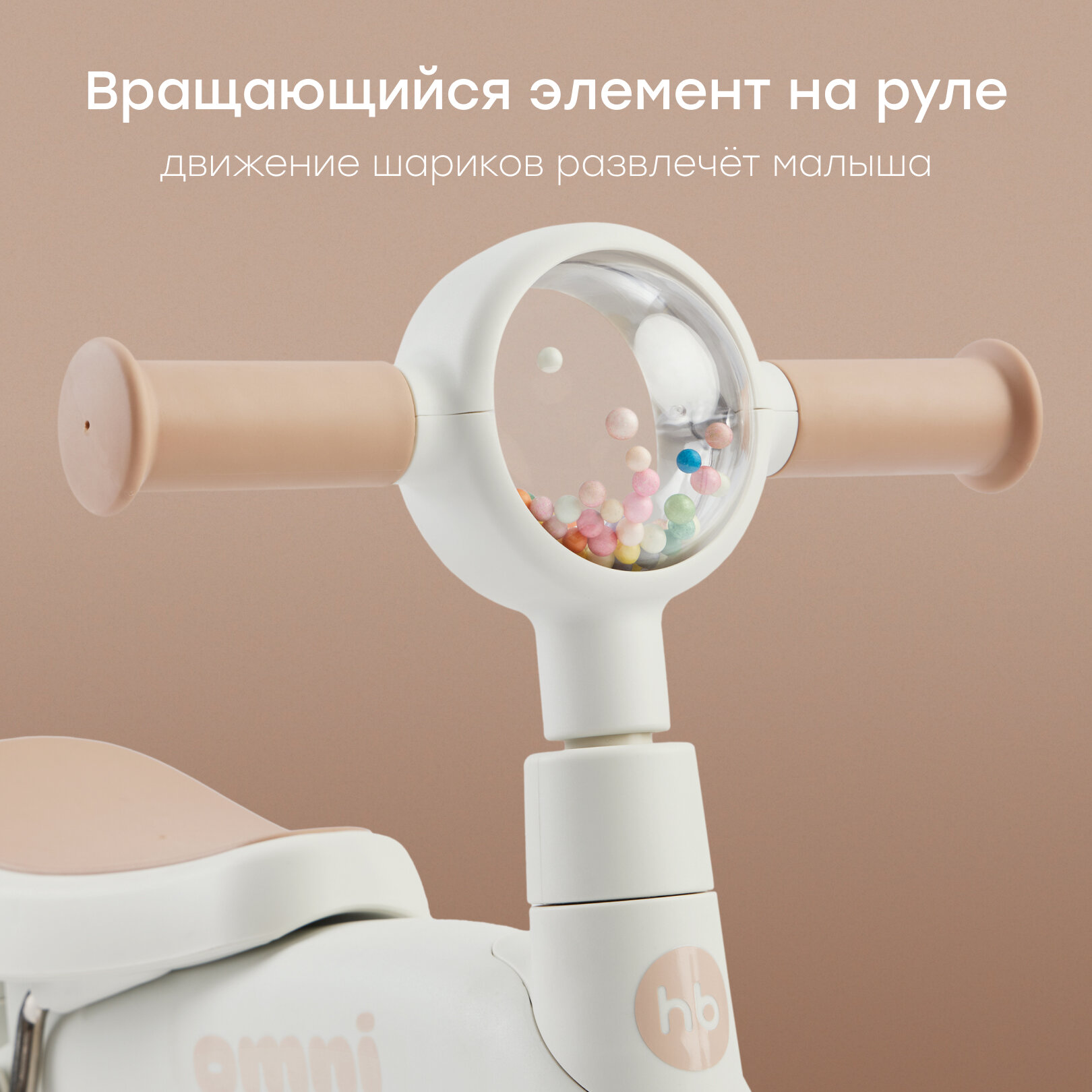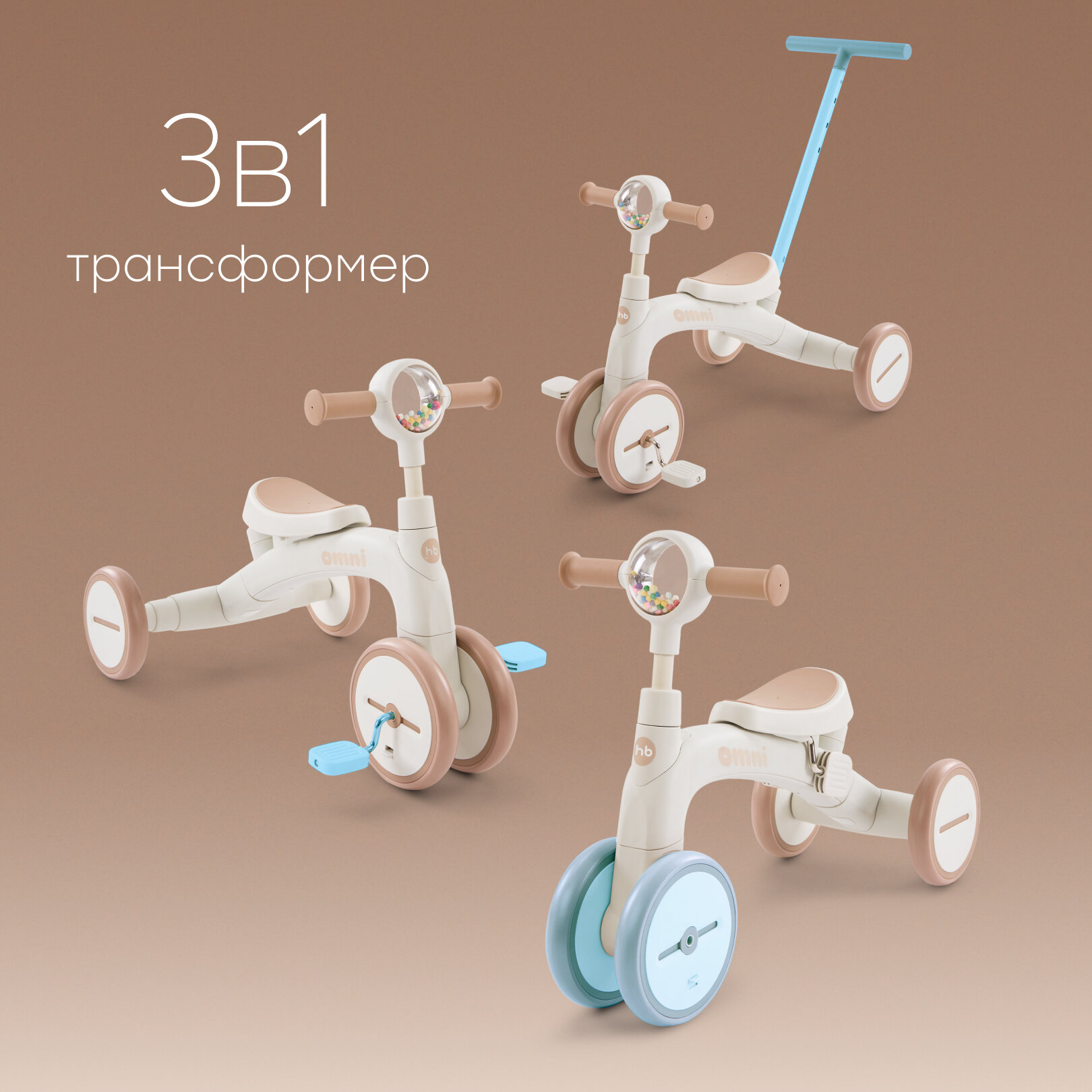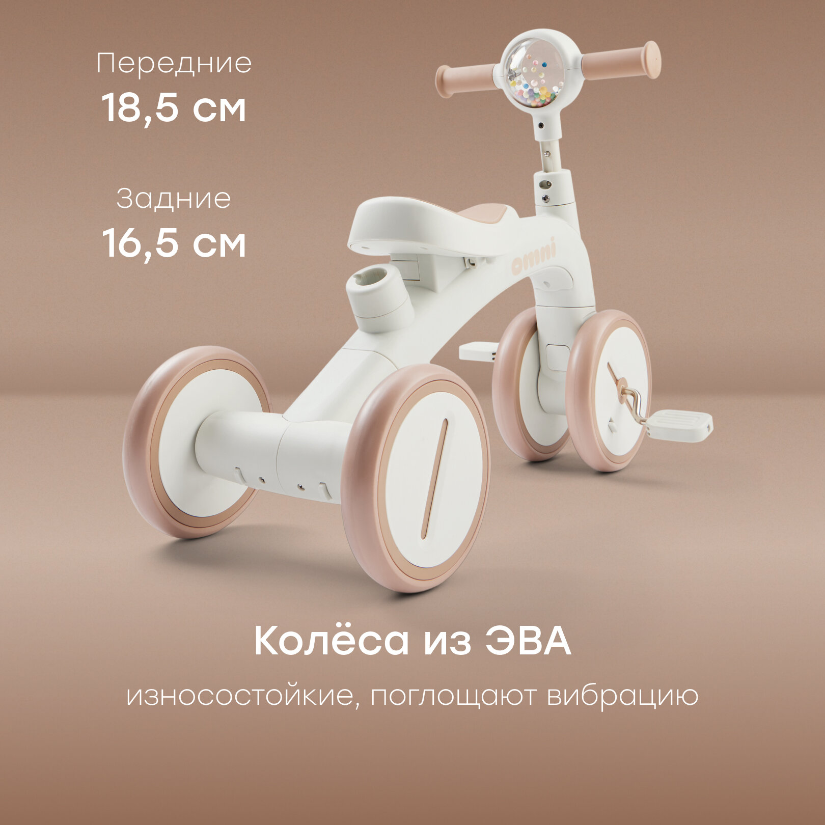 50050, Беговел детский от 1.5 OMNI, беговел трансформер двухколёсный-трехколесный, трёхколёсный велосипед, 3в1, бежевый