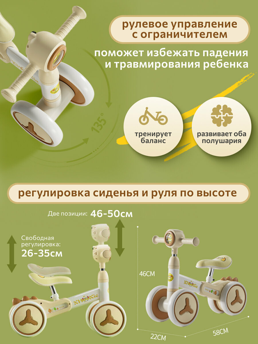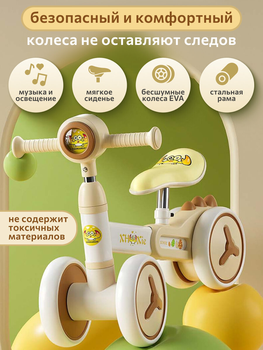 Беговел детский от 2 лет, регулировка руля и сиденья, подсветка, музыка, литые колеса интересное: