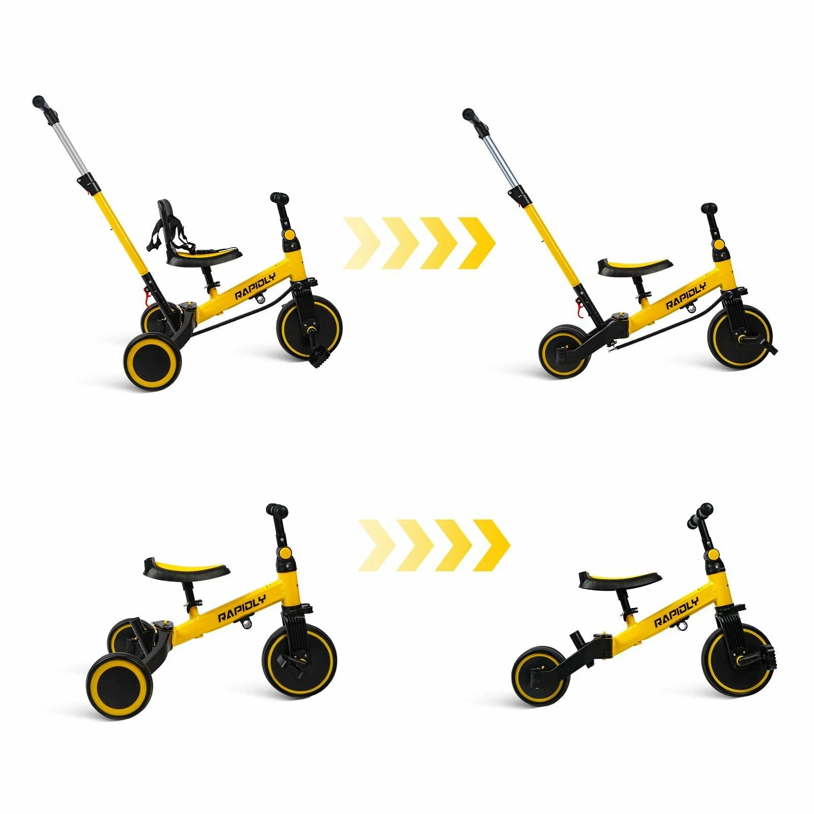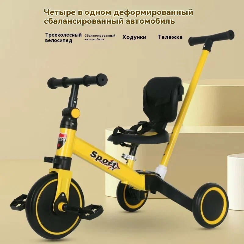 Беговел-велосипед Kd1, родительская ручка, 4 в 1, желтый, 5-7 лет