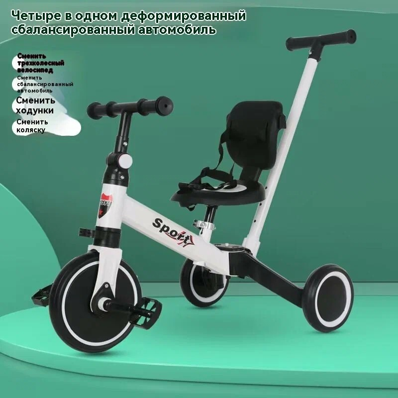 Беговел-велосипед 4 в 1 "Детский", родительская ручка, белый