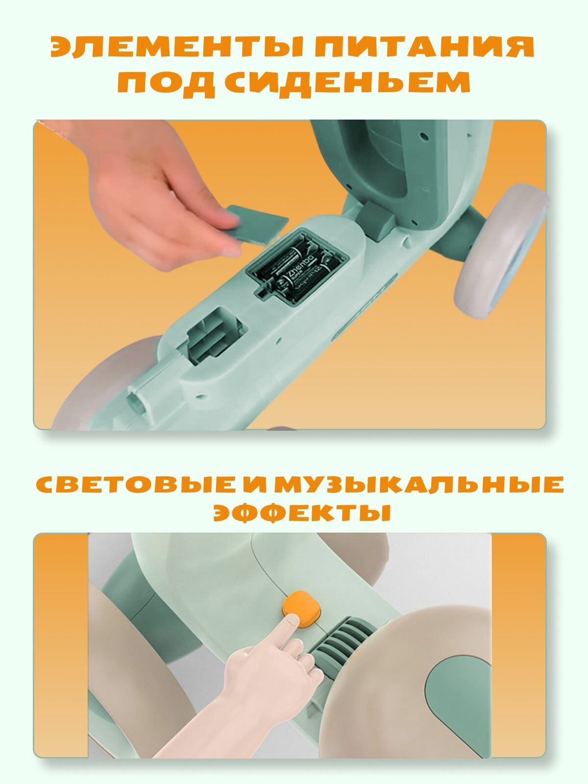 | Особенности | безопасные ручки / ограничитель поворота / световые и музыкальные эффекты / съёмное сиденье |