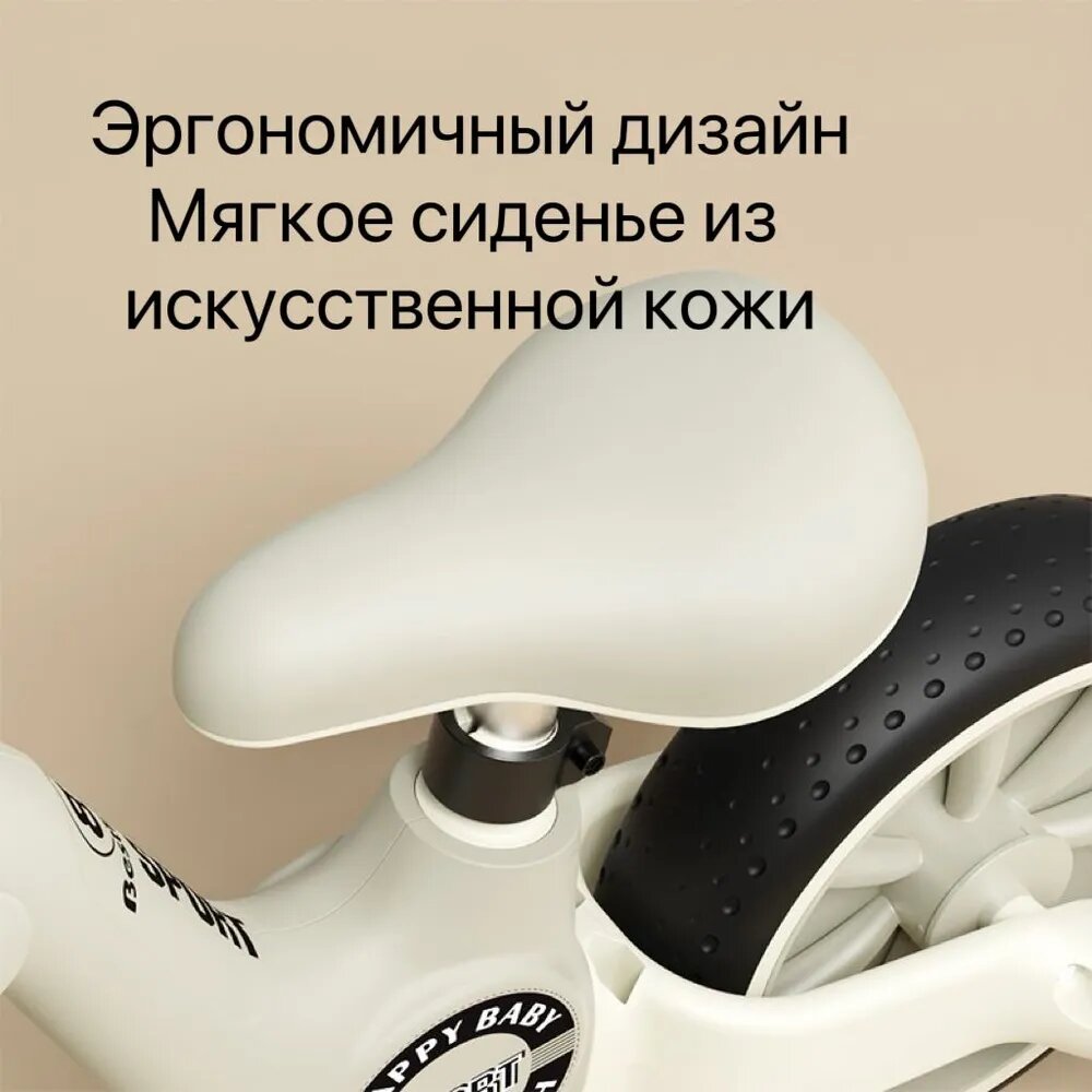 Беговел детский от 2 лет, KONIK! , светящиеся колеса, белый, с регулируемым сиденьем,