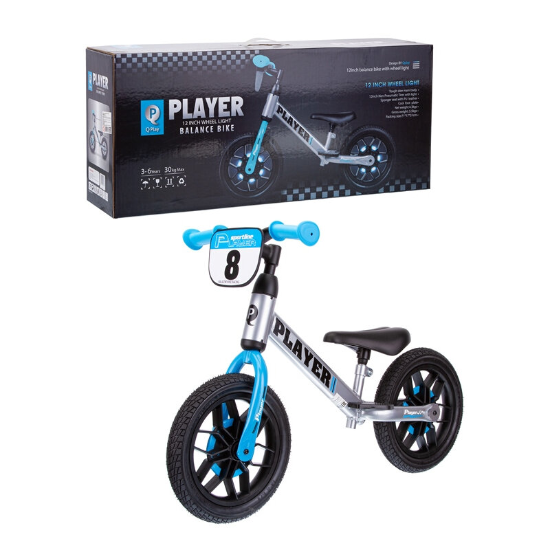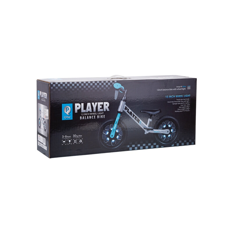 Купить Беговел "Qplay" стальная рама, EVA колеса 12 дюймов, светящиеся диски, цвет голубой, размер беговел