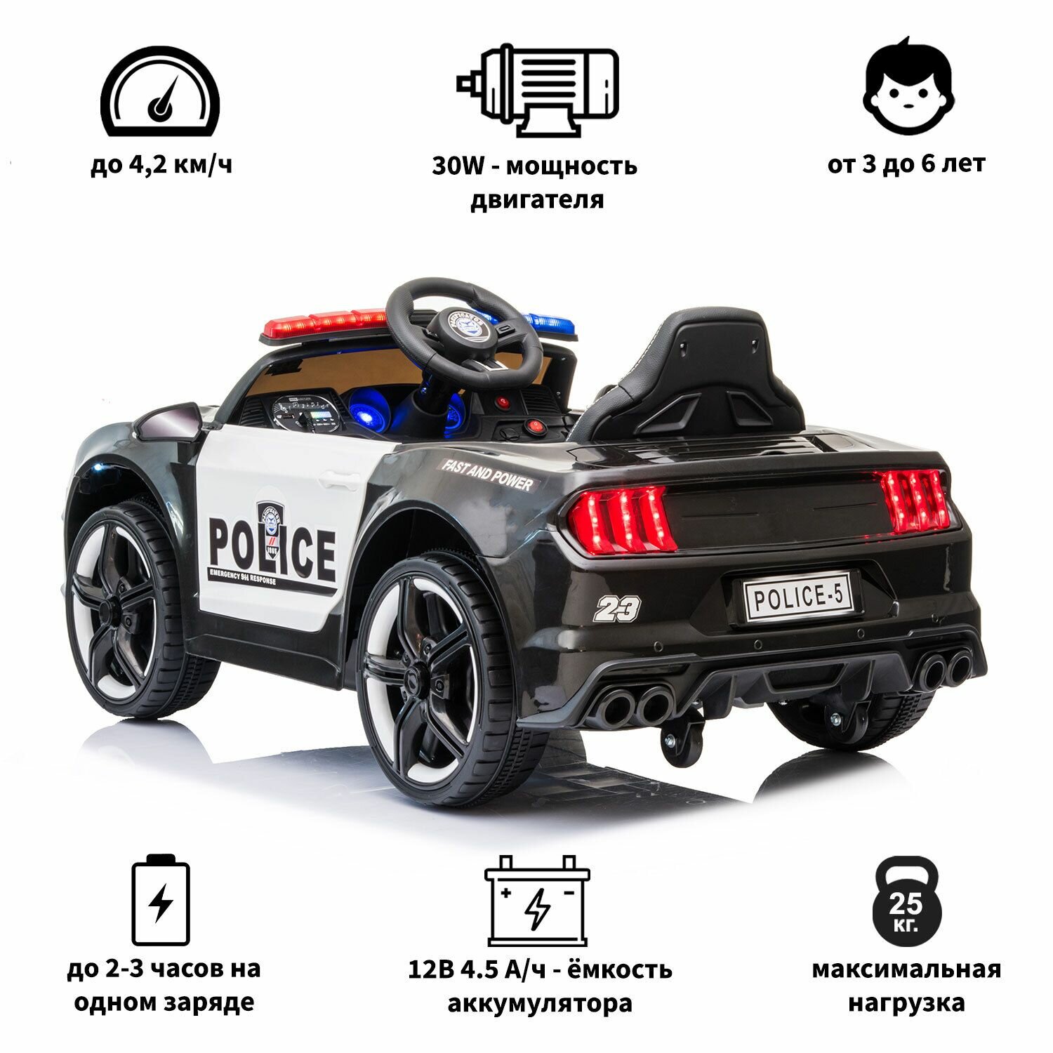 Электромобиль детский полиция с пультом, мигалкой и рацией Tommy Mustang Police-5 чёрный интересное:
