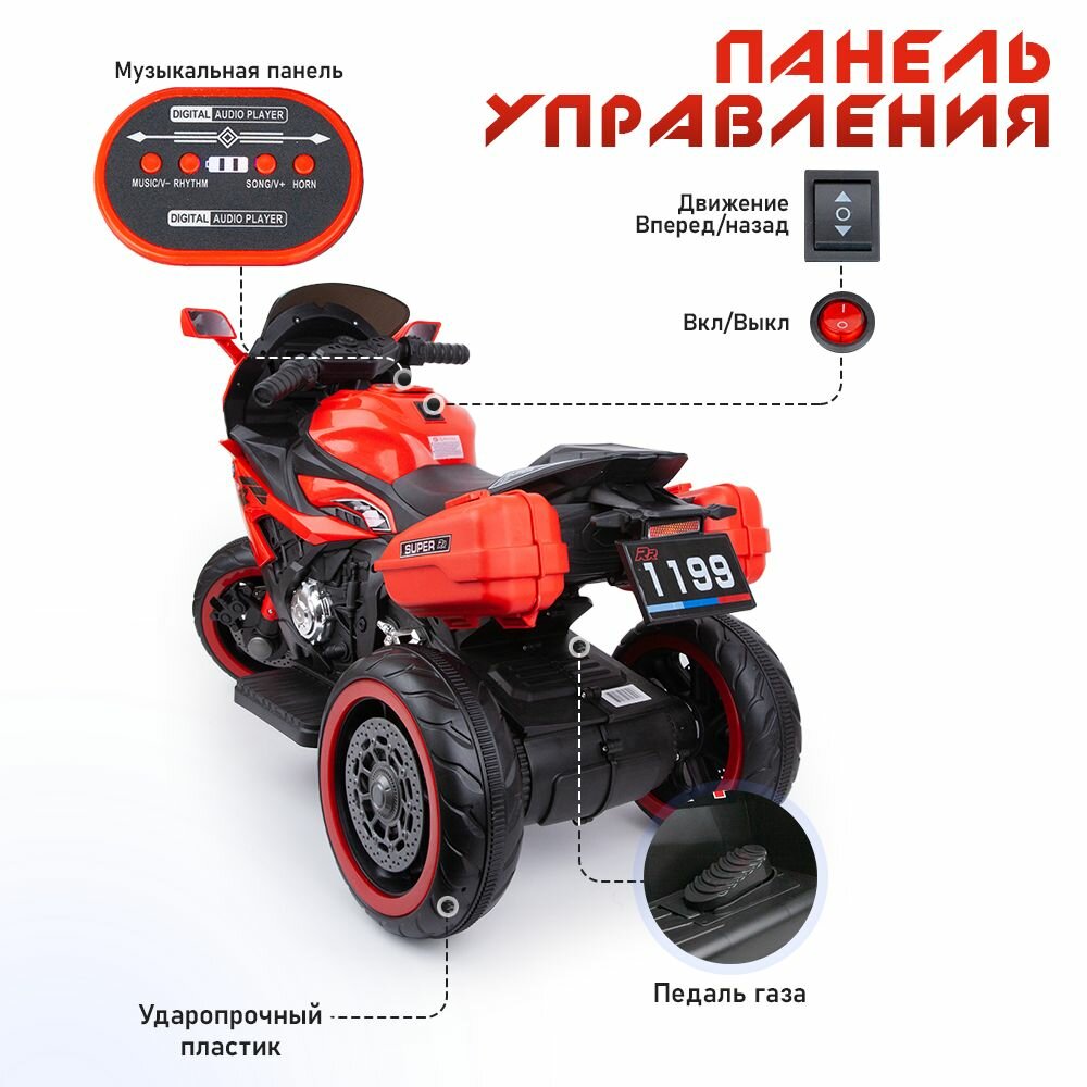 Электромотоцикл детский, на аккумуляторе, со светом и звуком, красный интересное: