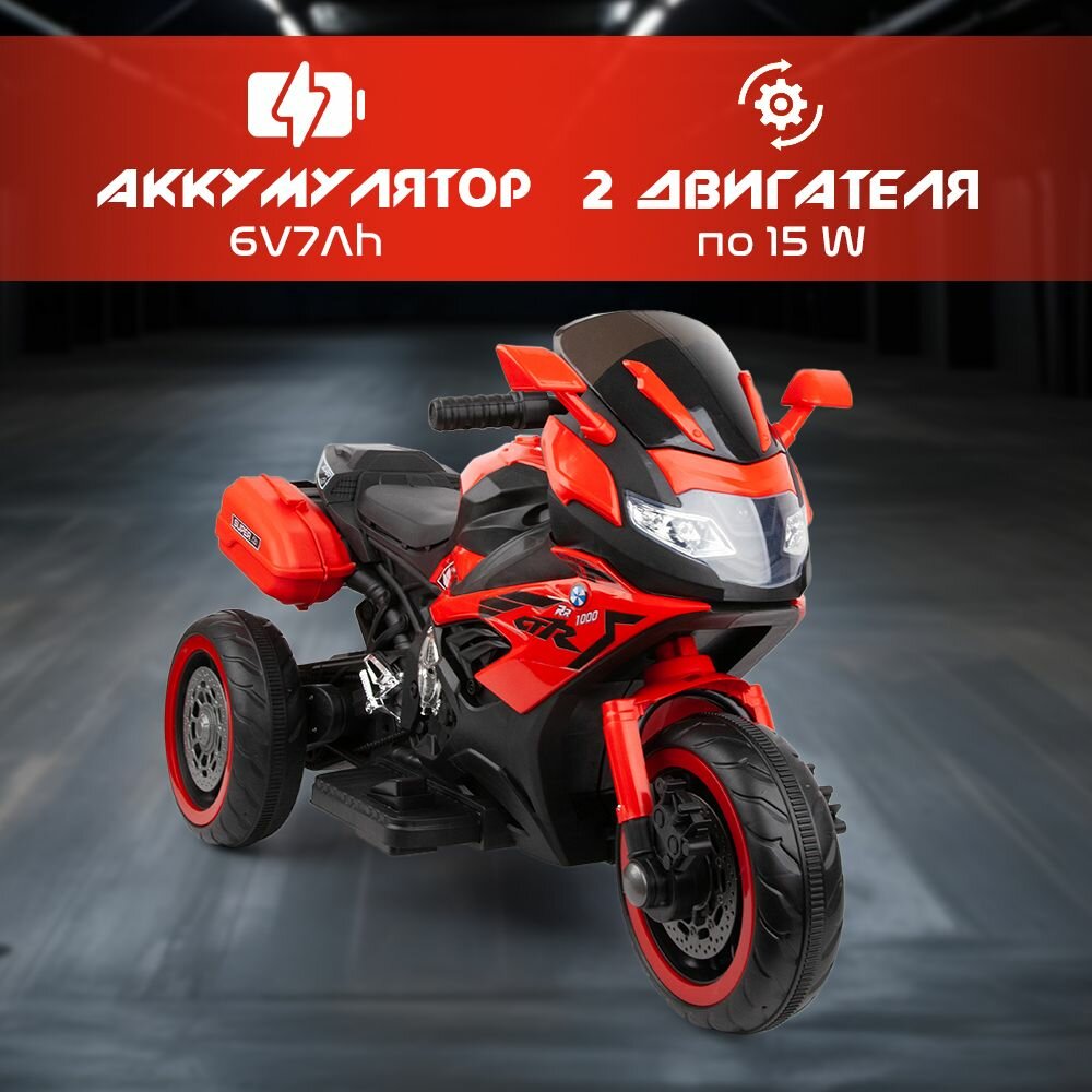 Купить Электромотоцикл детский, на аккумуляторе, со светом и звуком, красный